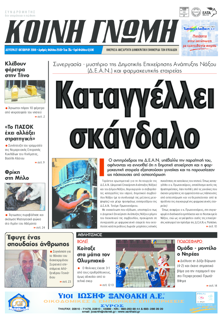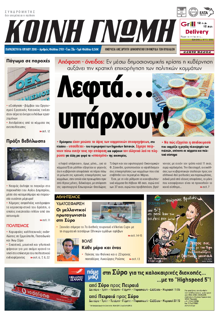 ΚΟΙΝΗ ΓΝΩΜΗ ΚΟΙΝΗ ΓΝΩΜΗ Ημερησια Εφημεριδα των Κυκλαδων