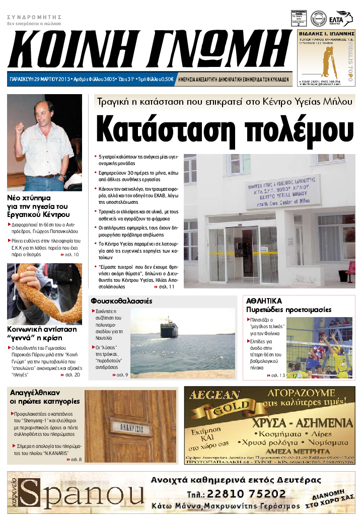 ΚΟΙΝΗ ΓΝΩΜΗ ΚΟΙΝΗ ΓΝΩΜΗ Ημερησια Εφημεριδα των Κυκλαδων