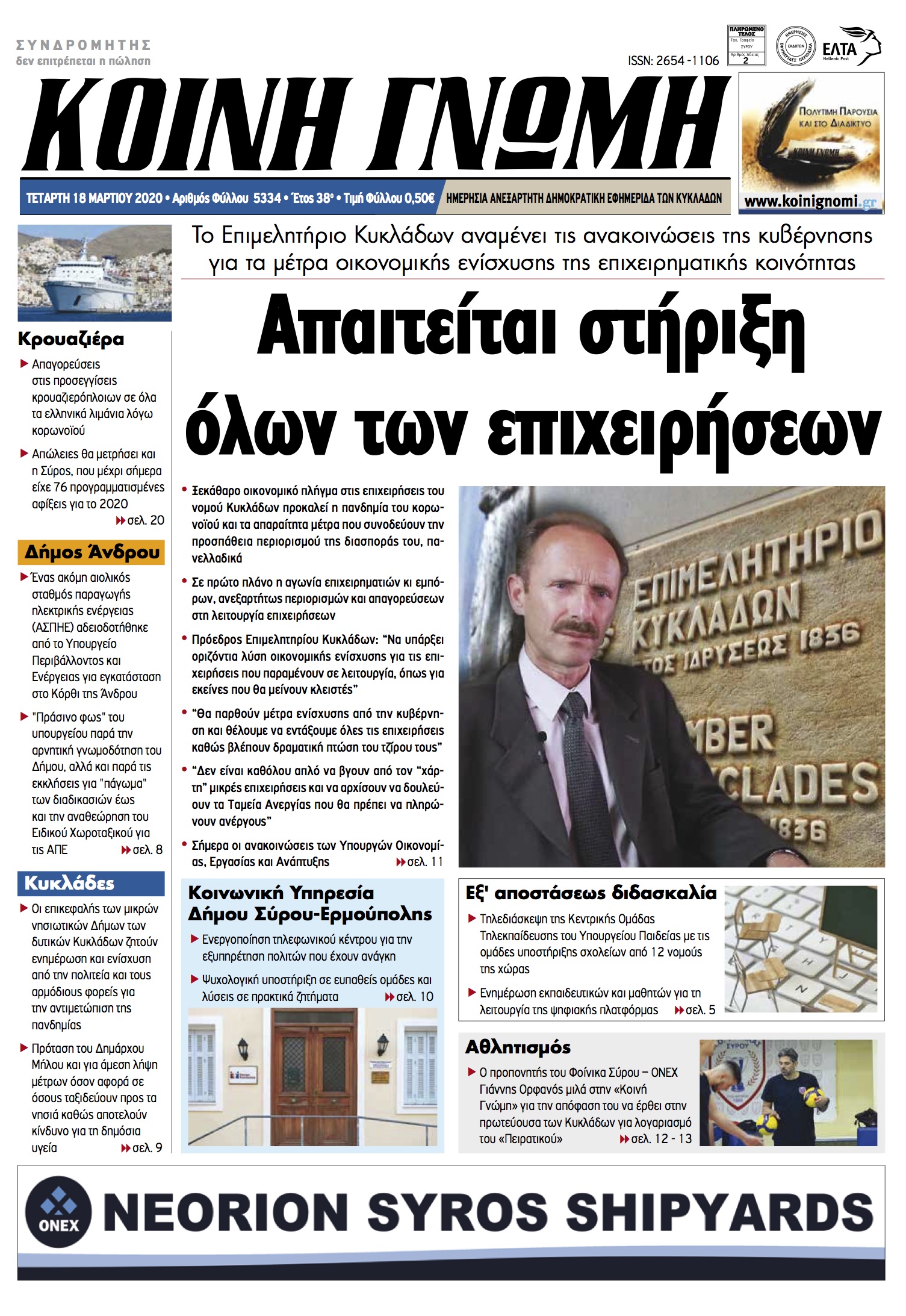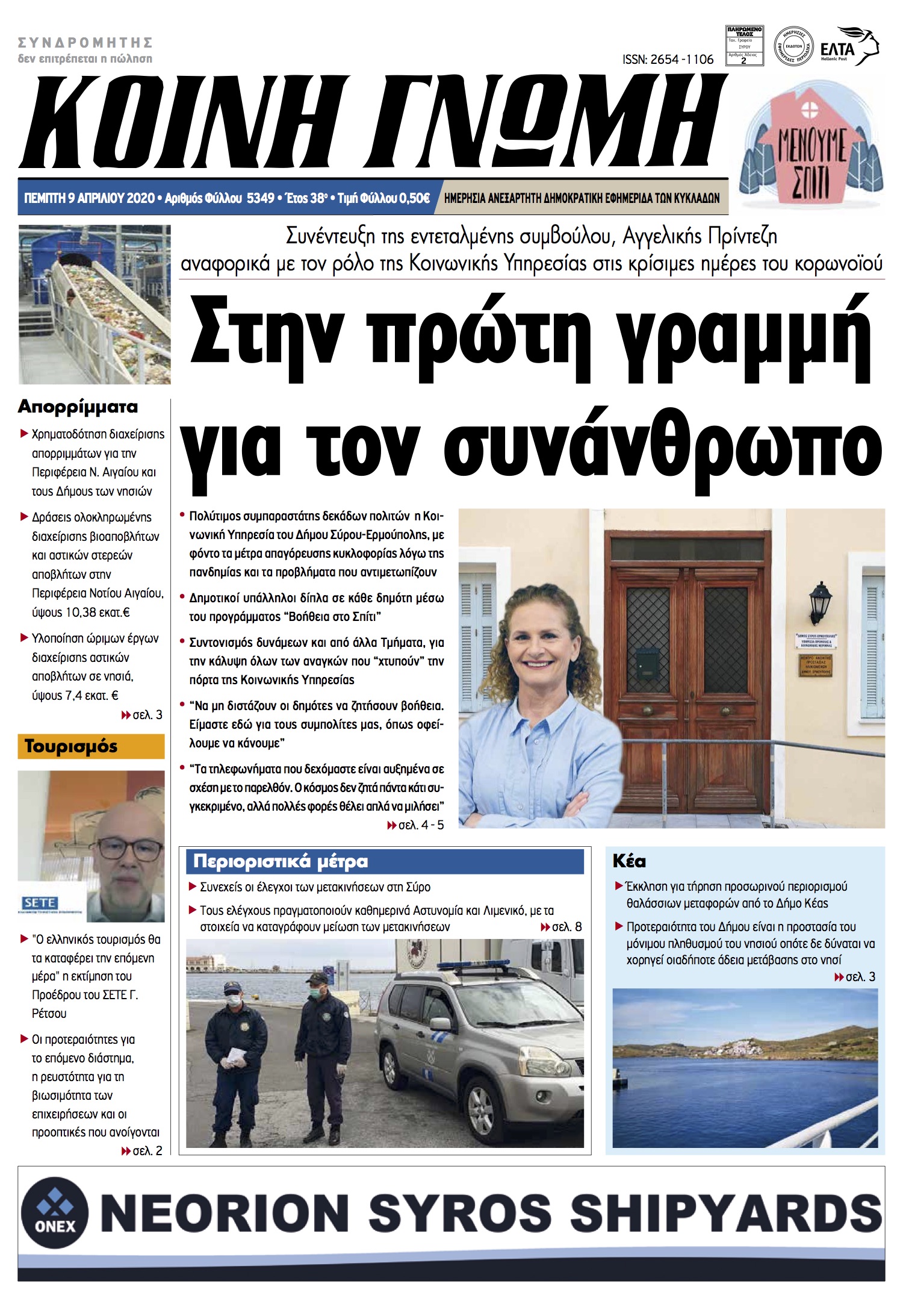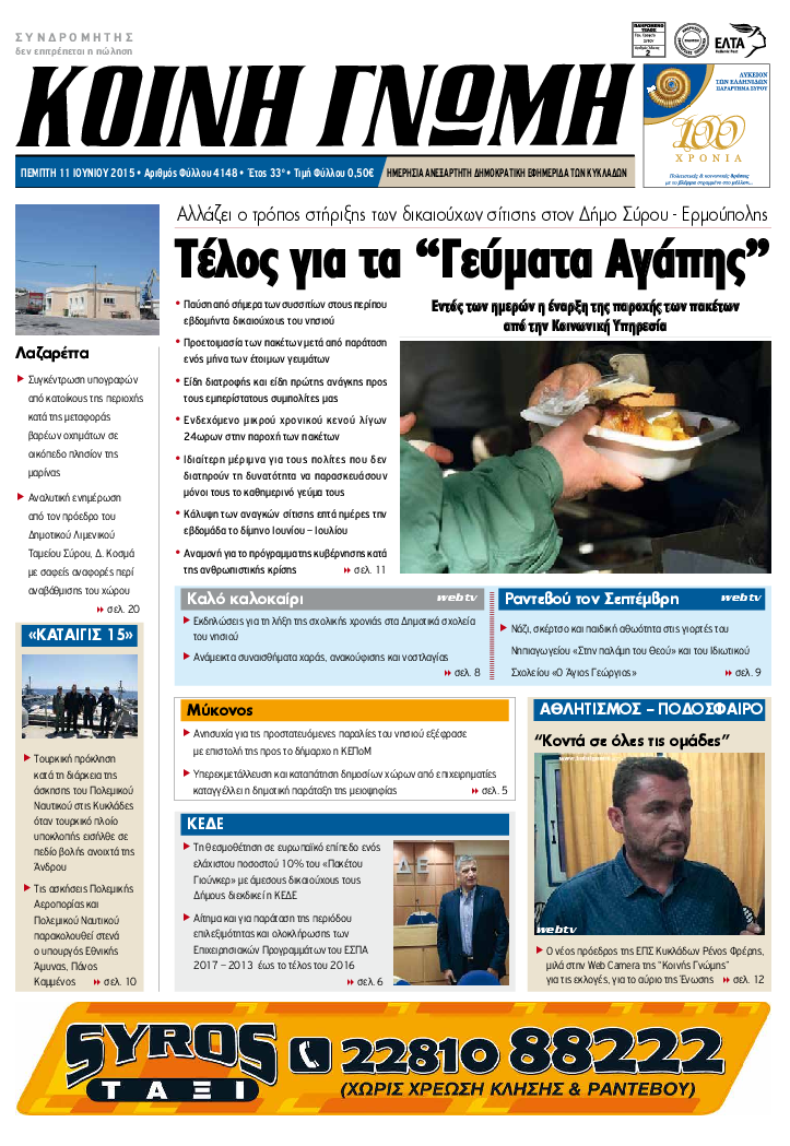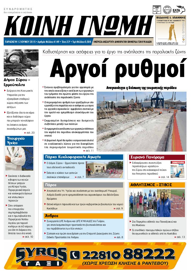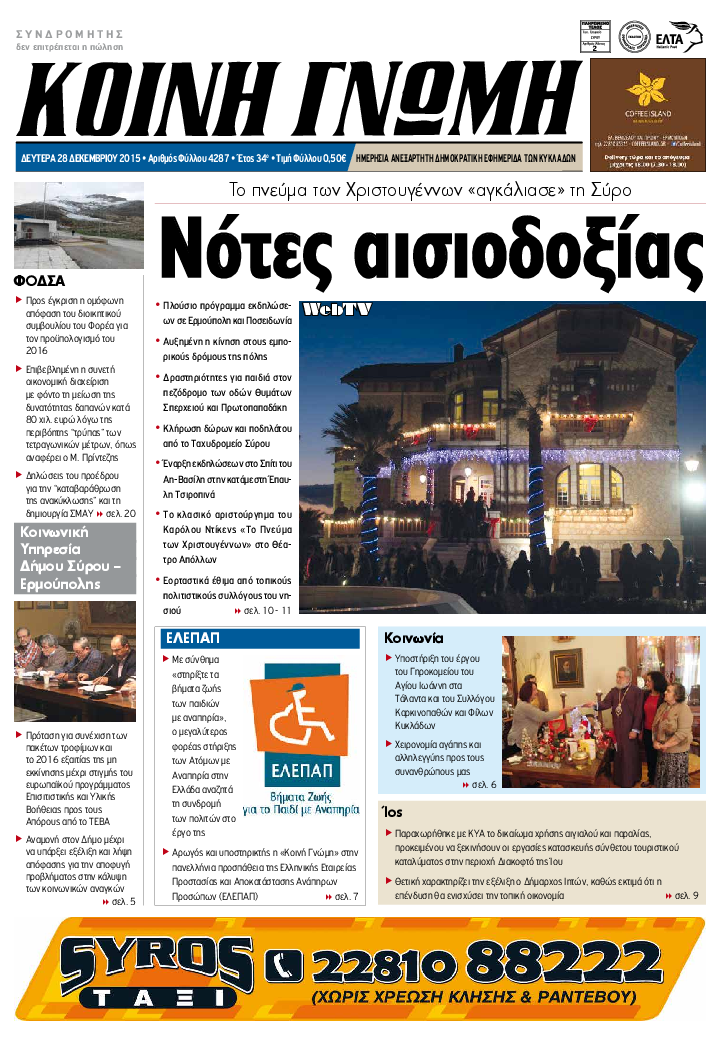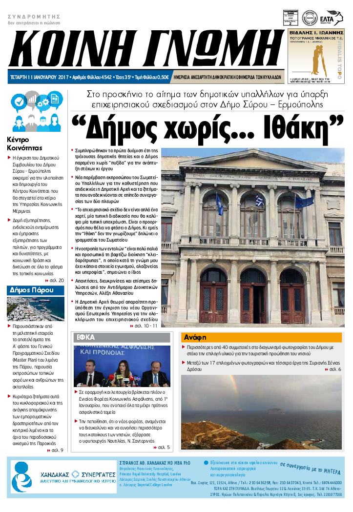ΚΟΙΝΗ ΓΝΩΜΗ ΚΟΙΝΗ ΓΝΩΜΗ Ημερησια Εφημεριδα των Κυκλαδων