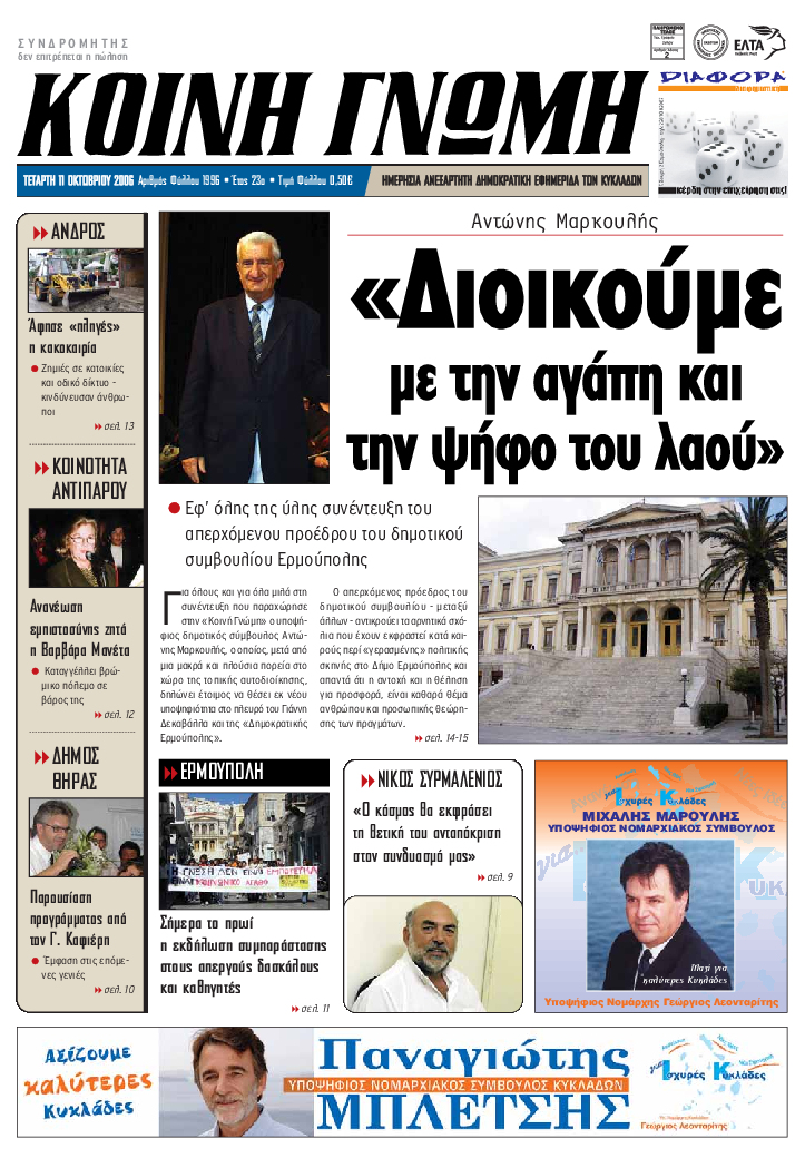 ΚΟΙΝΗ ΓΝΩΜΗ ΚΟΙΝΗ ΓΝΩΜΗ Ημερησια Εφημεριδα των Κυκλαδων