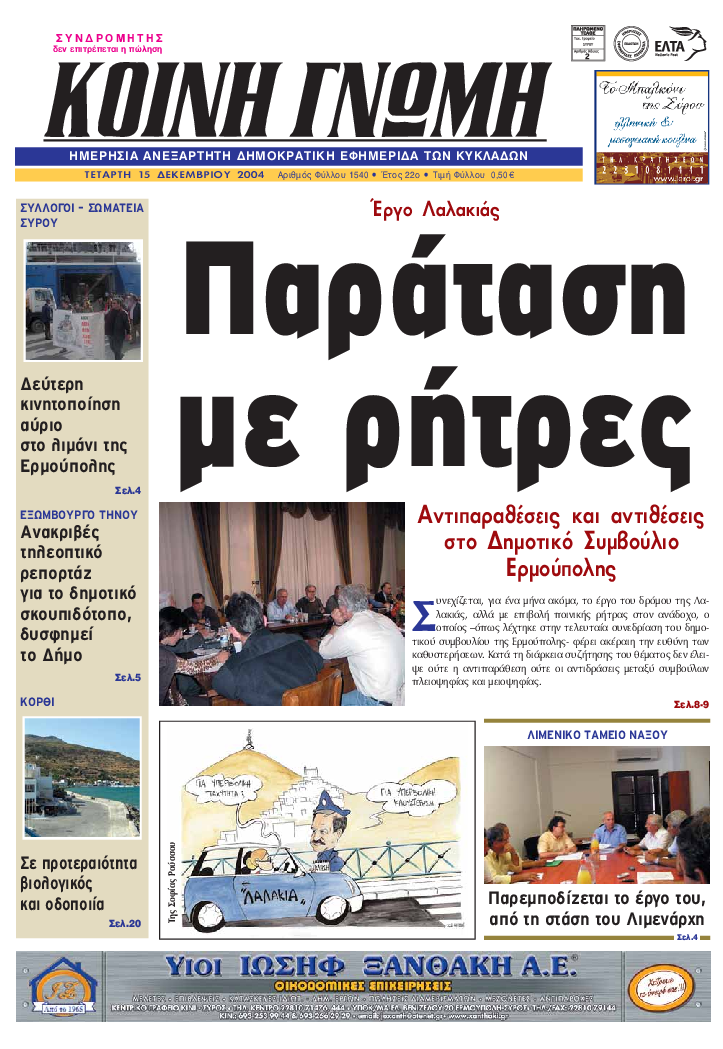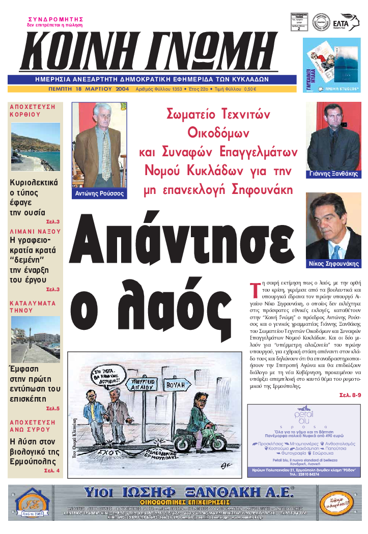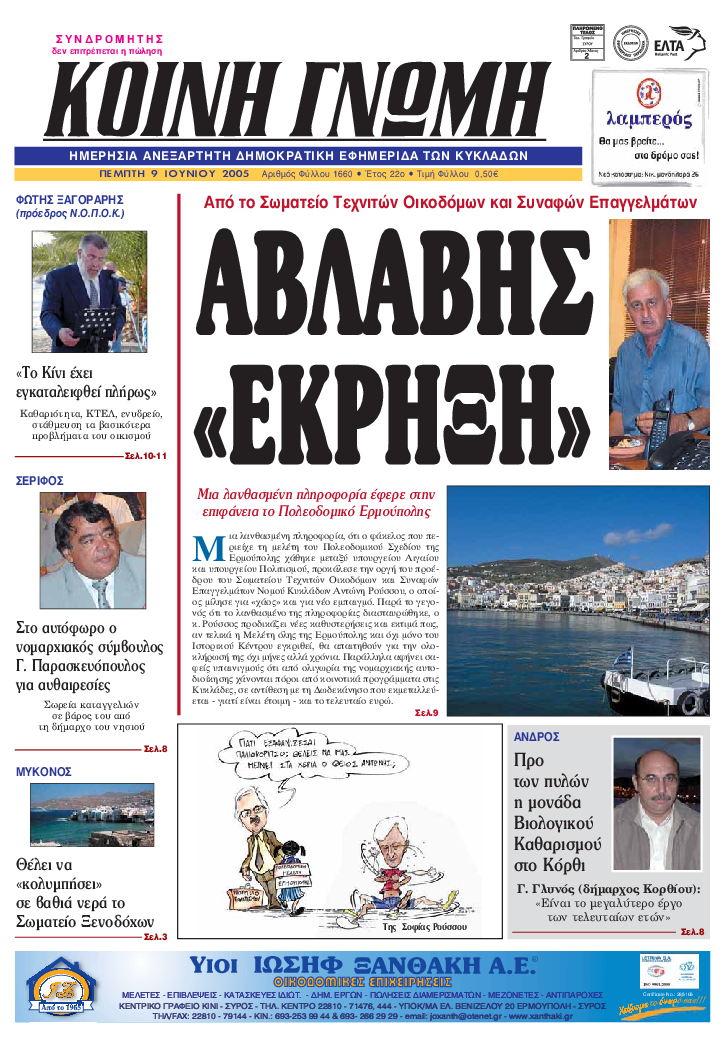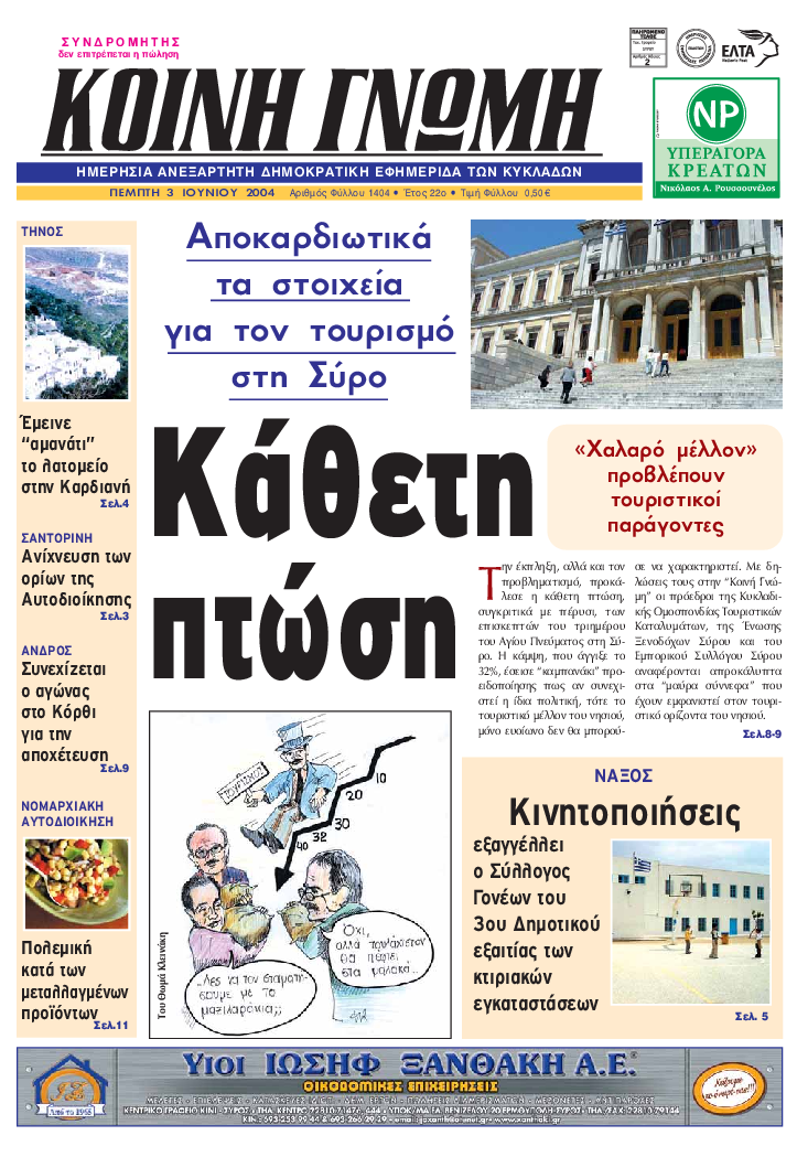 ΚΟΙΝΗ ΓΝΩΜΗ ΚΟΙΝΗ ΓΝΩΜΗ Ημερησια Εφημεριδα των Κυκλαδων