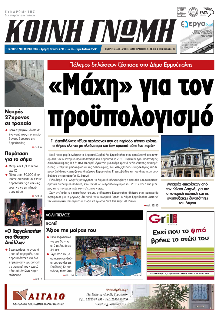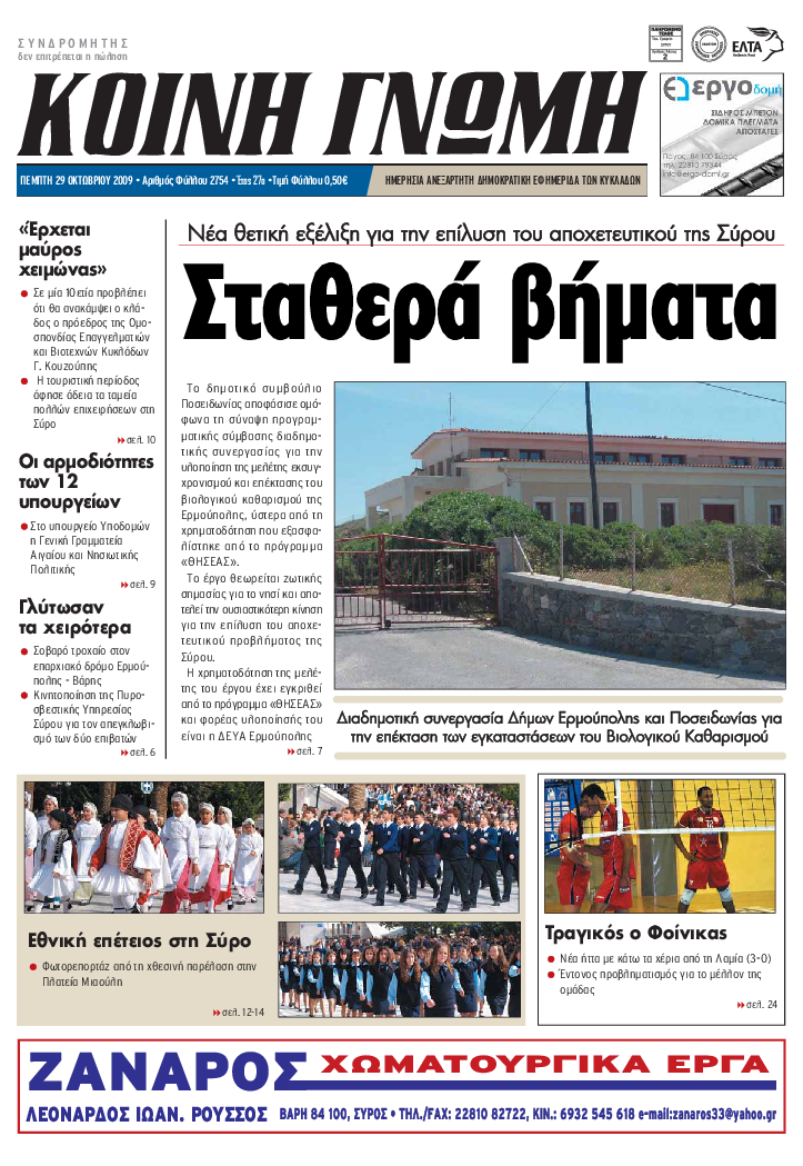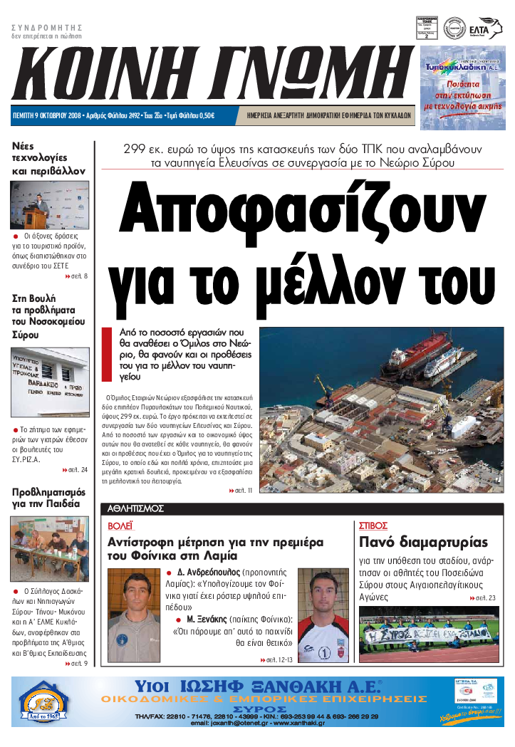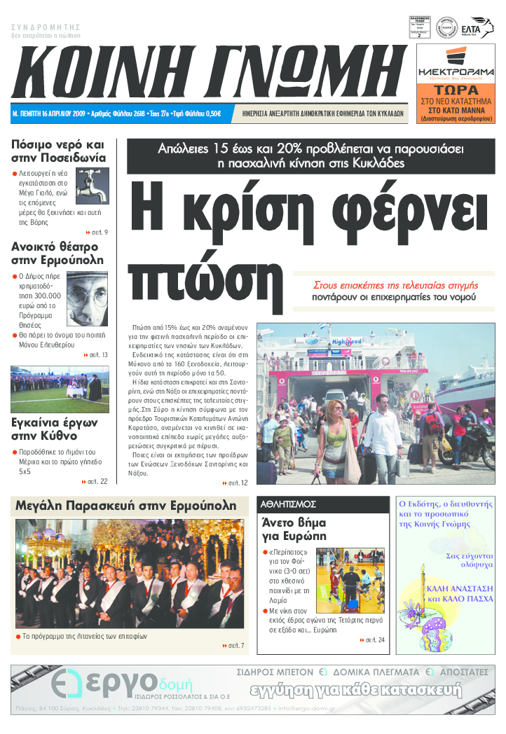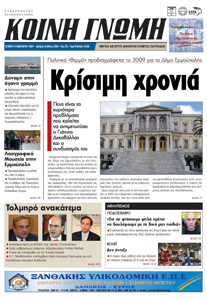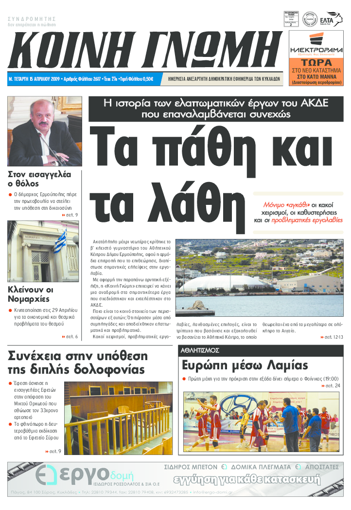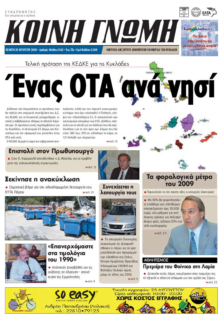 ΚΟΙΝΗ ΓΝΩΜΗ ΚΟΙΝΗ ΓΝΩΜΗ Ημερησια Εφημεριδα των Κυκλαδων
