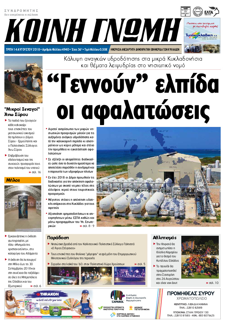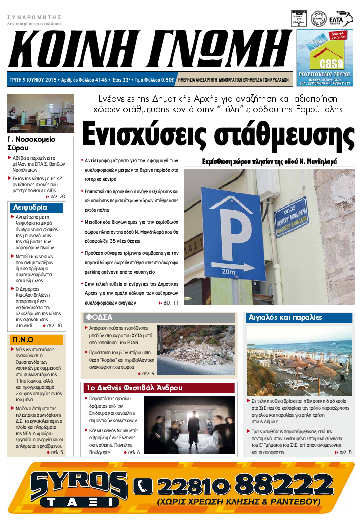 ΚΟΙΝΗ ΓΝΩΜΗ ΚΟΙΝΗ ΓΝΩΜΗ Ημερησια Εφημεριδα των Κυκλαδων