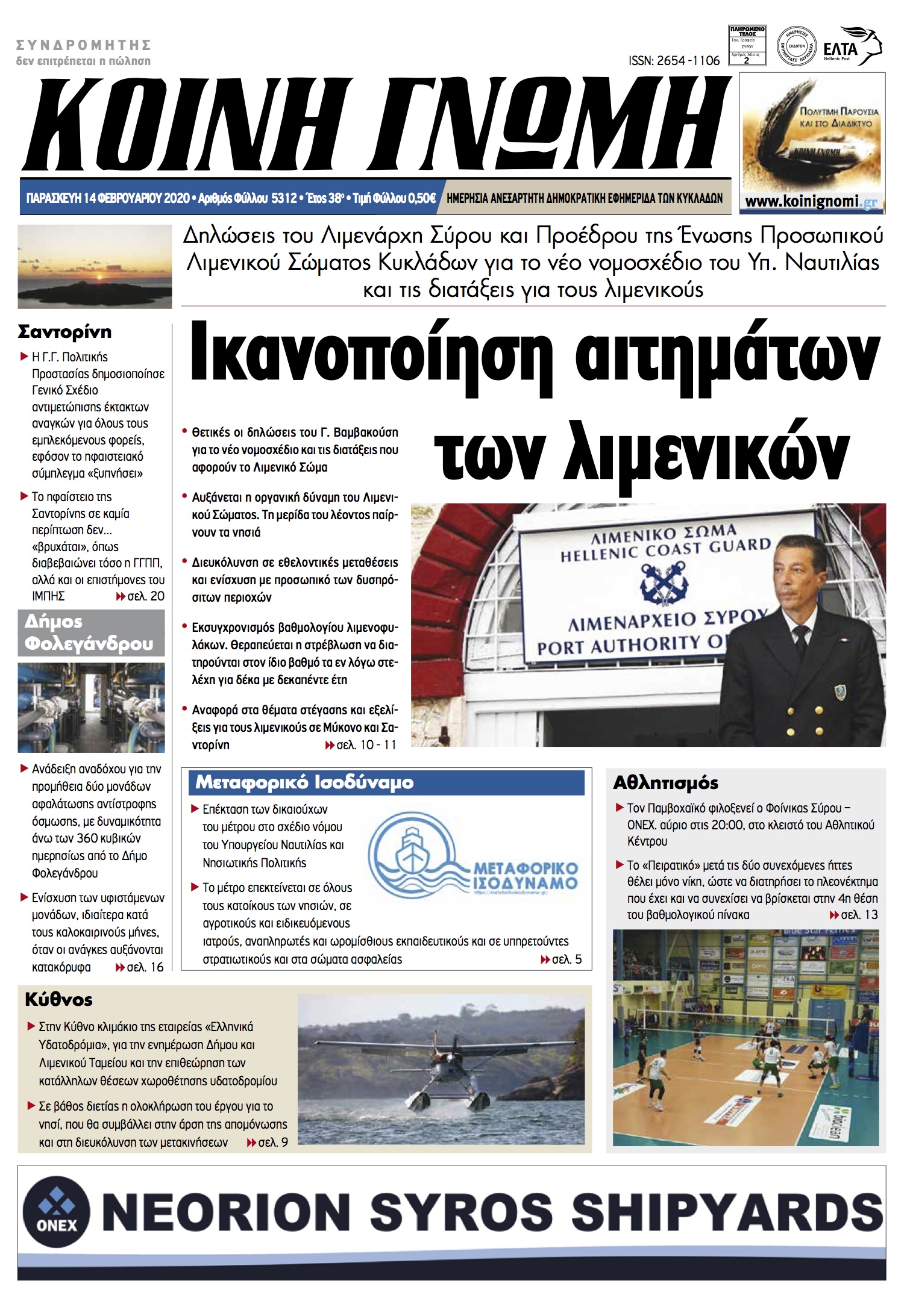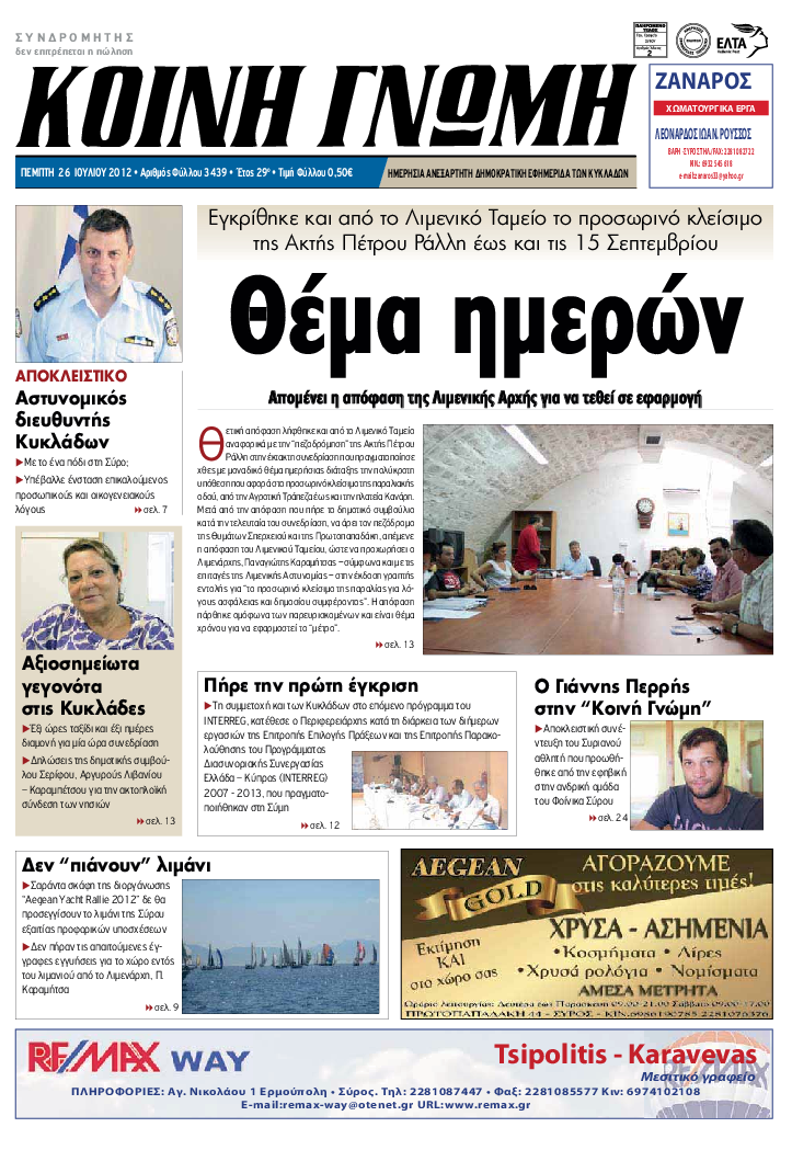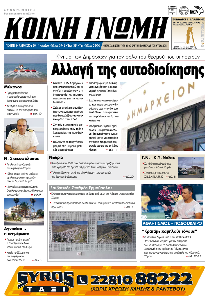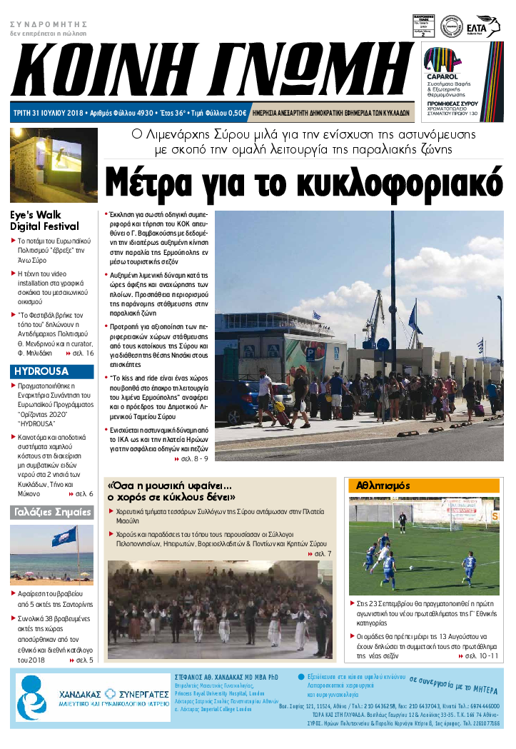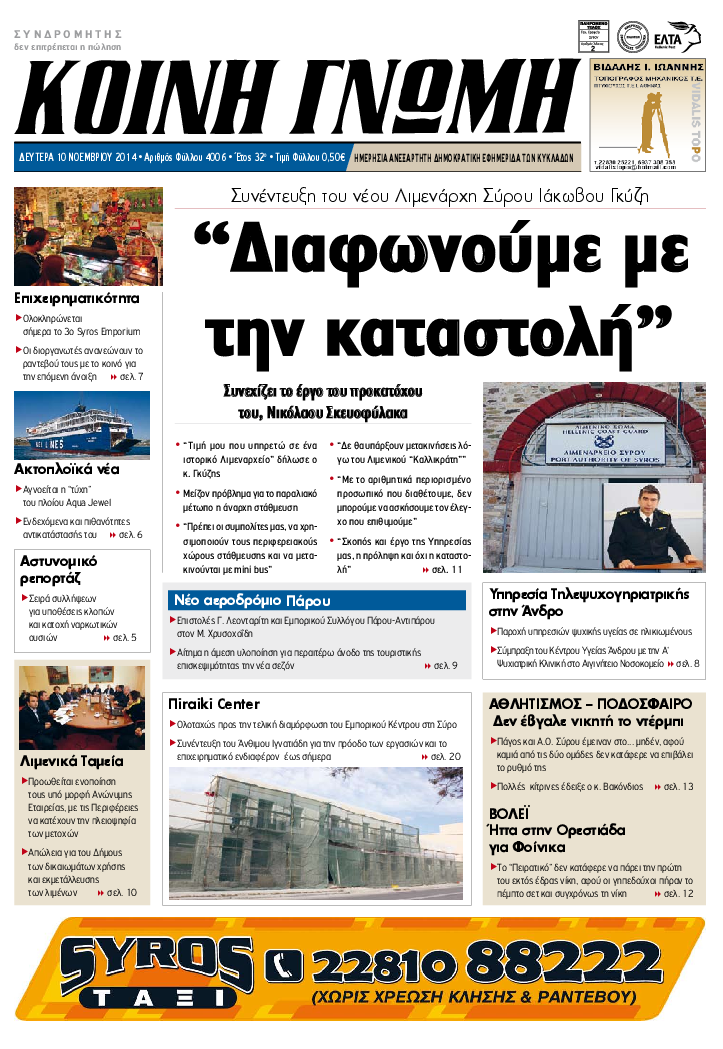 ΚΟΙΝΗ ΓΝΩΜΗ ΚΟΙΝΗ ΓΝΩΜΗ Ημερησια Εφημεριδα των Κυκλαδων