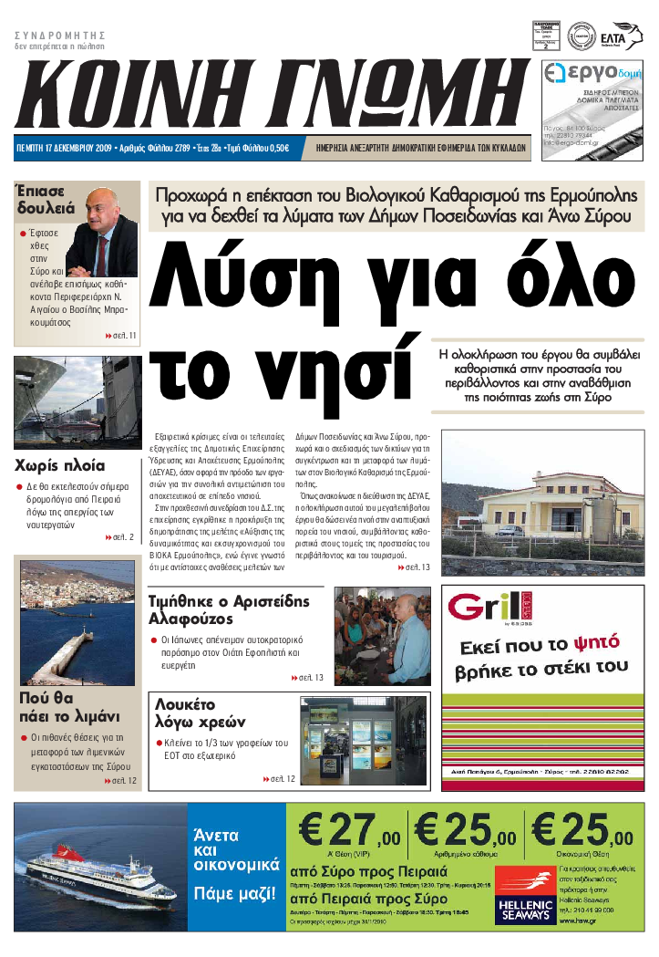 ΚΟΙΝΗ ΓΝΩΜΗ ΚΟΙΝΗ ΓΝΩΜΗ Ημερησια Εφημεριδα των Κυκλαδων