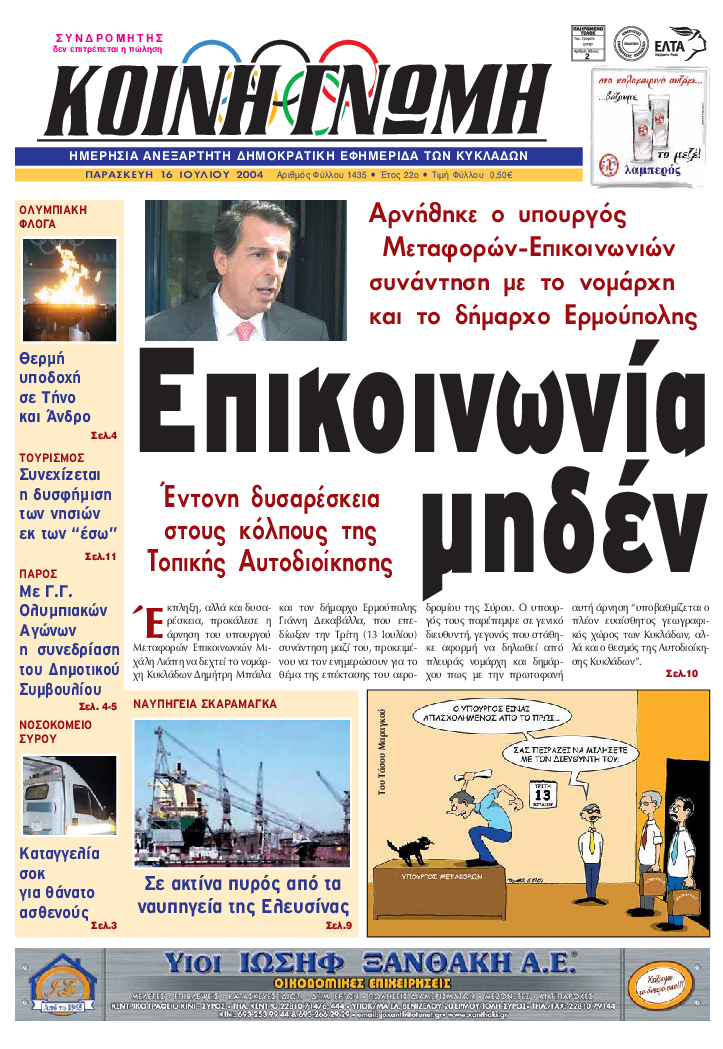ΚΟΙΝΗ ΓΝΩΜΗ ΚΟΙΝΗ ΓΝΩΜΗ Ημερησια Εφημεριδα των Κυκλαδων