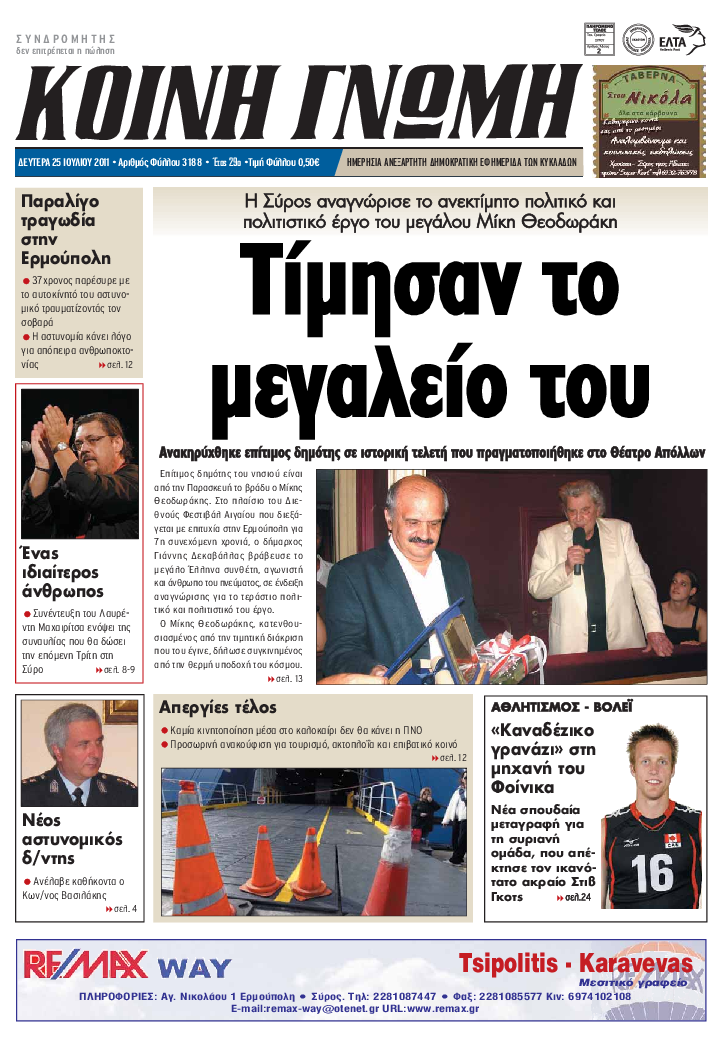 ΚΟΙΝΗ ΓΝΩΜΗ ΚΟΙΝΗ ΓΝΩΜΗ Ημερησια Εφημεριδα των Κυκλαδων