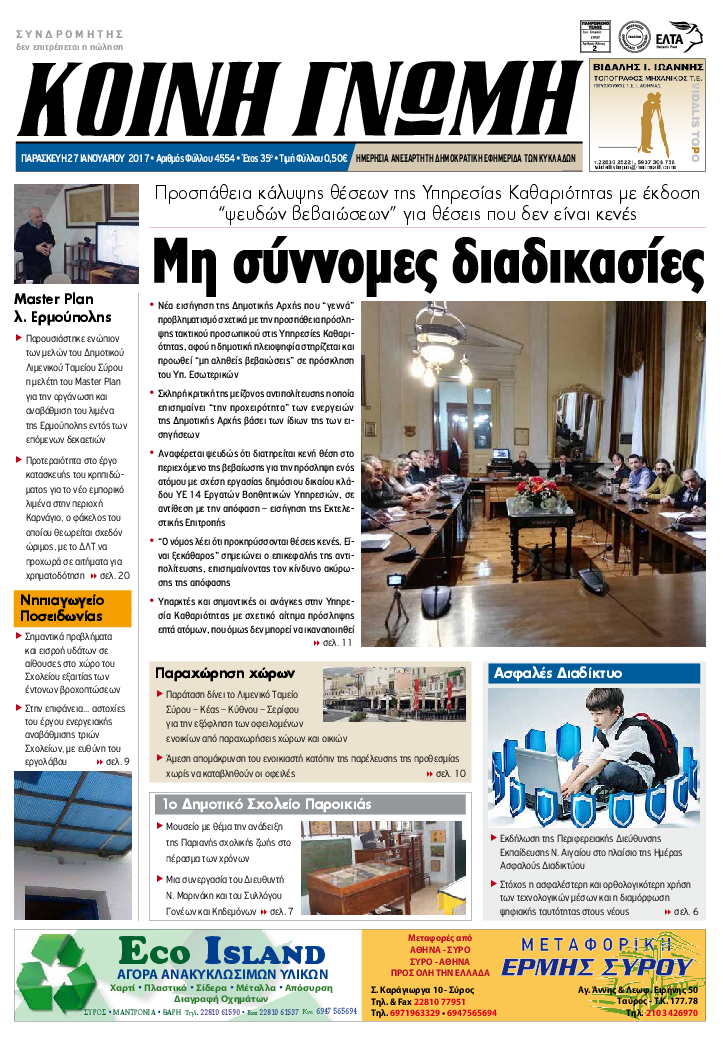 ΚΟΙΝΗ ΓΝΩΜΗ ΚΟΙΝΗ ΓΝΩΜΗ Ημερησια Εφημεριδα των Κυκλαδων