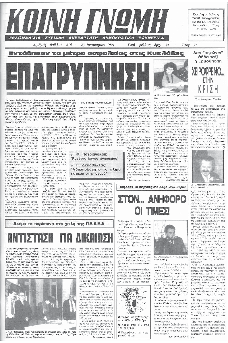 ΚΟΙΝΗ ΓΝΩΜΗ ΚΟΙΝΗ ΓΝΩΜΗ Ημερησια Εφημεριδα των Κυκλαδων
