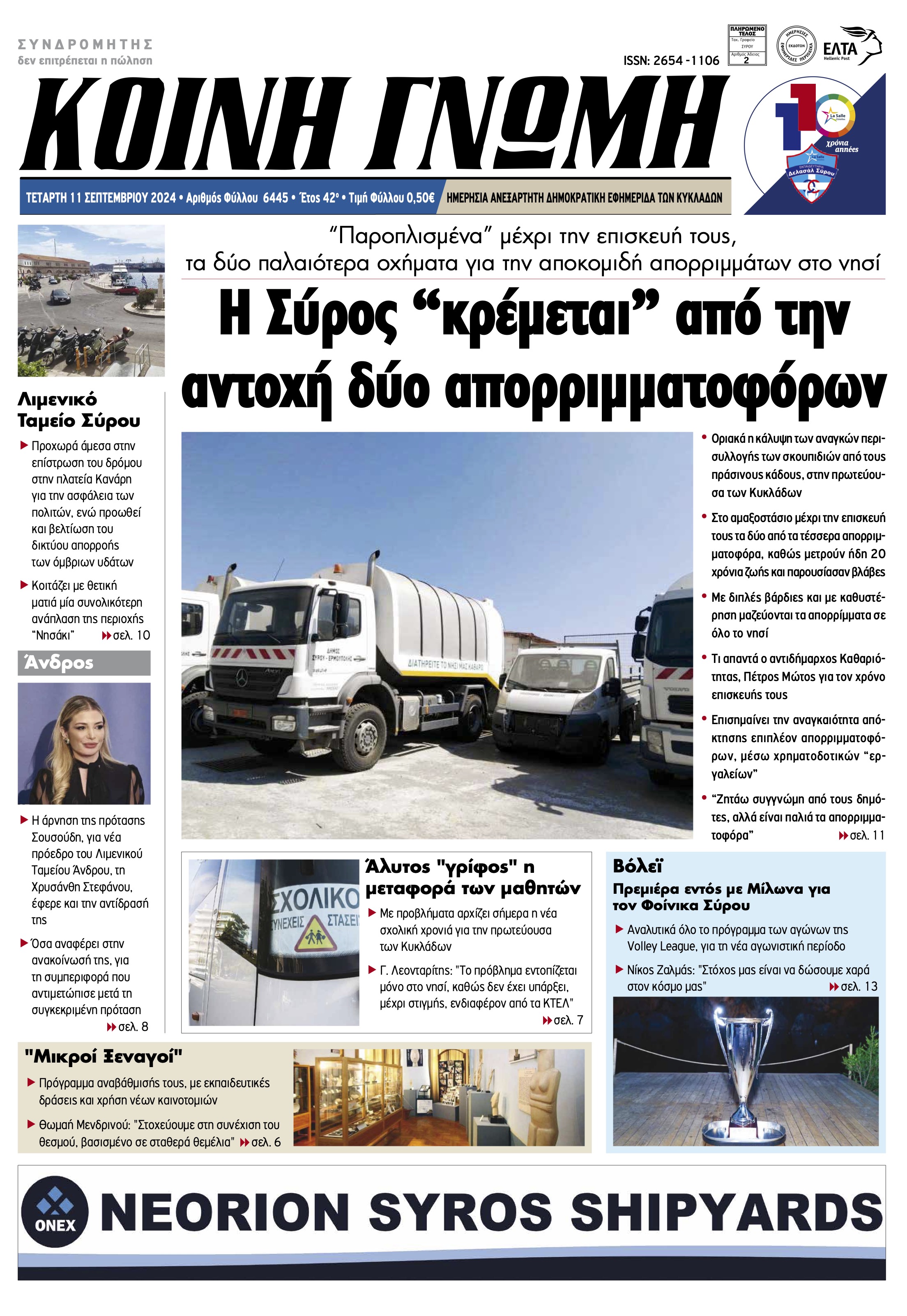 ΚΟΙΝΗ ΓΝΩΜΗ ΚΟΙΝΗ ΓΝΩΜΗ Ημερησια Εφημεριδα των Κυκλαδων