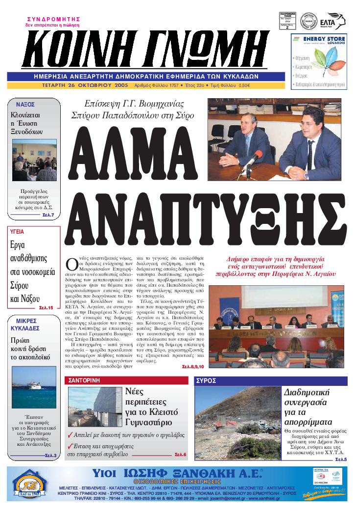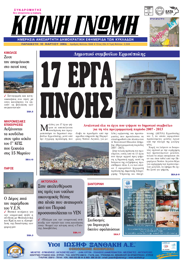 ΚΟΙΝΗ ΓΝΩΜΗ ΚΟΙΝΗ ΓΝΩΜΗ Ημερησια Εφημεριδα των Κυκλαδων
