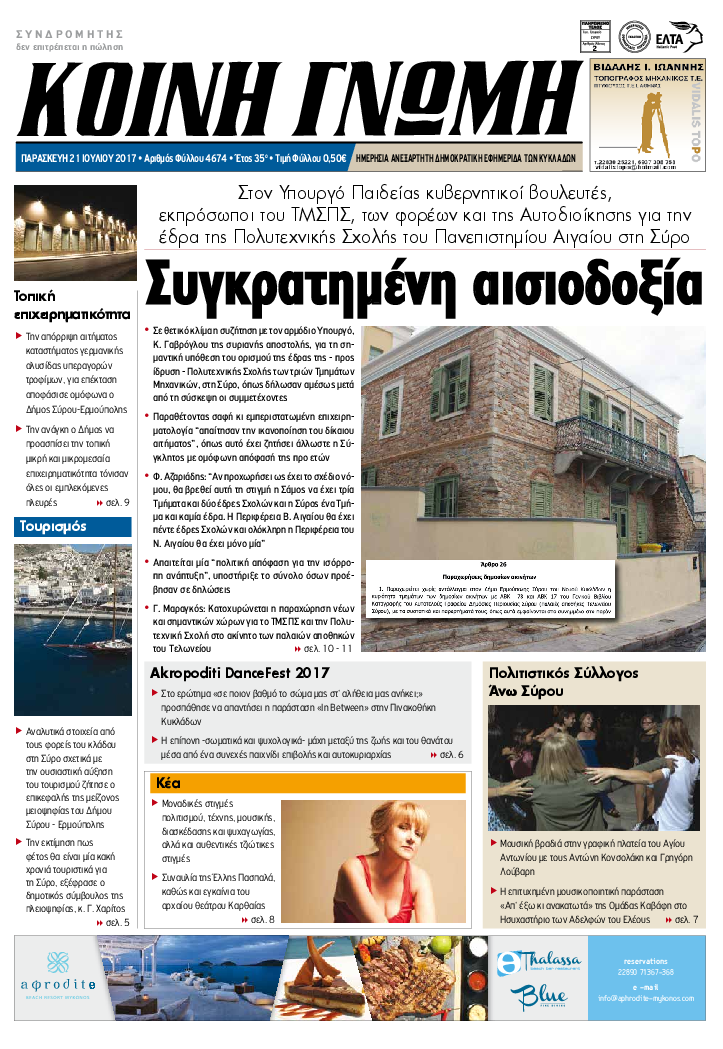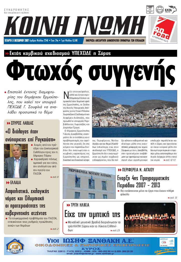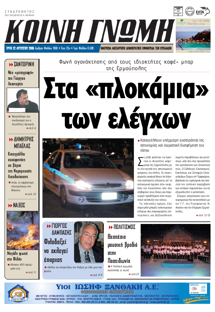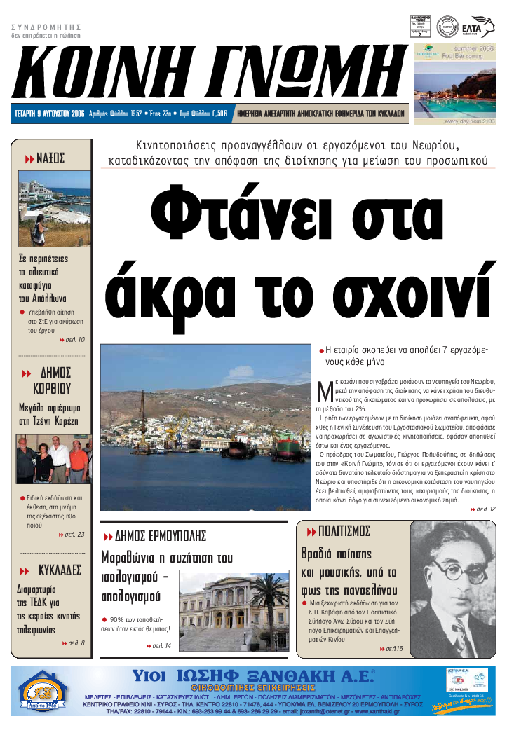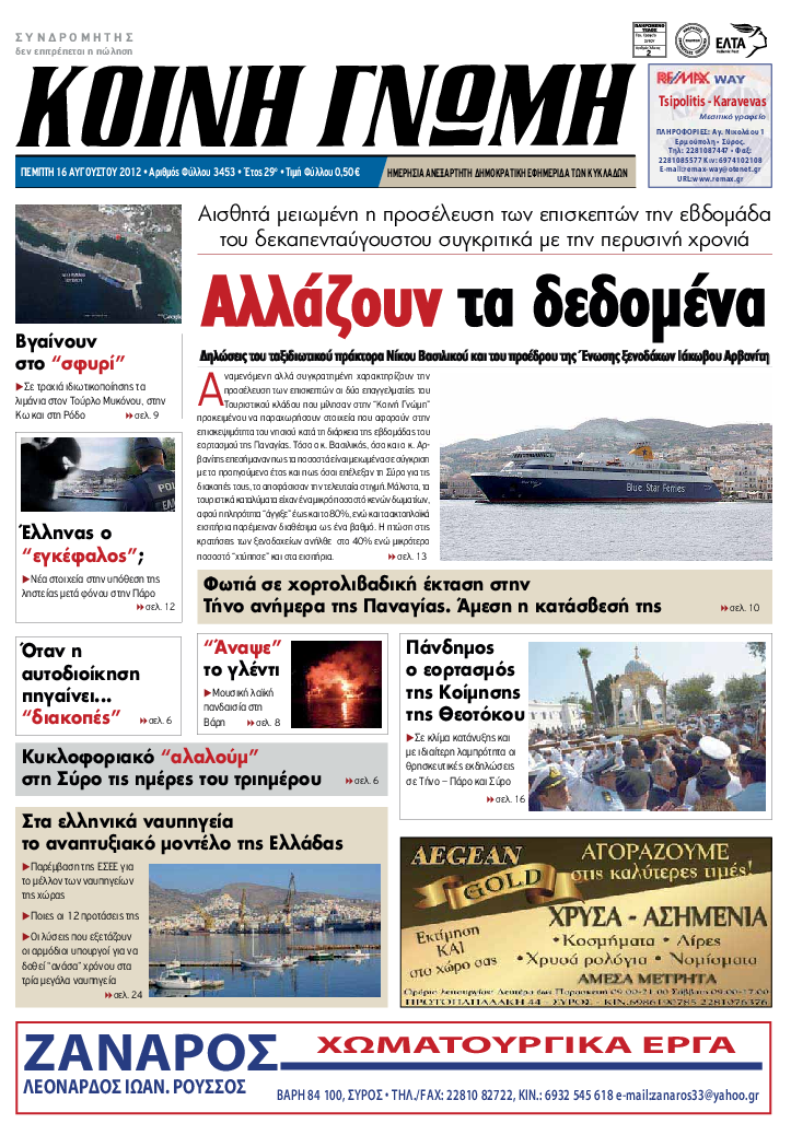 ΚΟΙΝΗ ΓΝΩΜΗ ΚΟΙΝΗ ΓΝΩΜΗ Ημερησια Εφημεριδα των Κυκλαδων