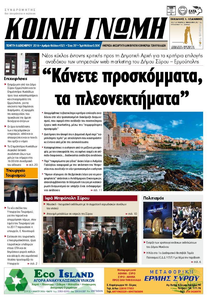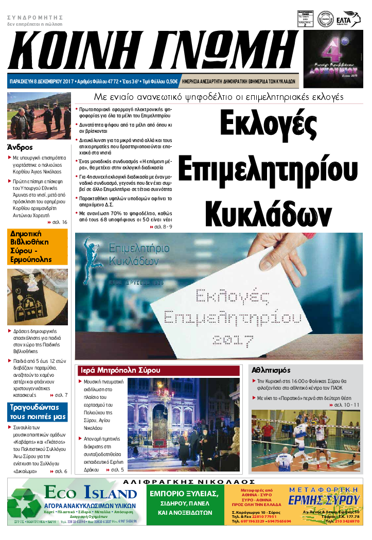 ΚΟΙΝΗ ΓΝΩΜΗ ΚΟΙΝΗ ΓΝΩΜΗ Ημερησια Εφημεριδα των Κυκλαδων