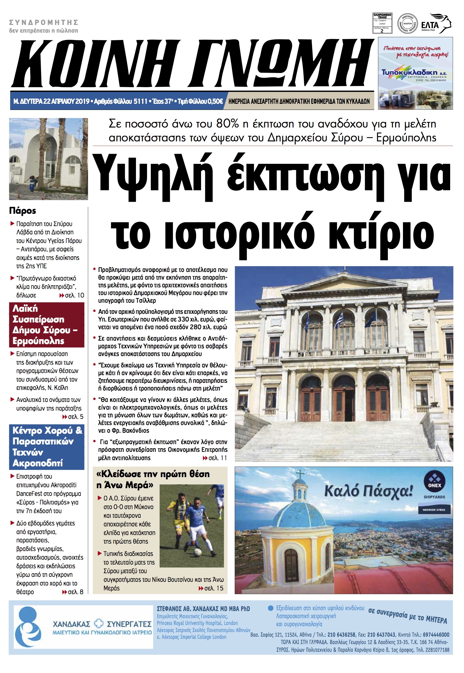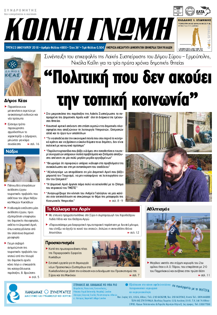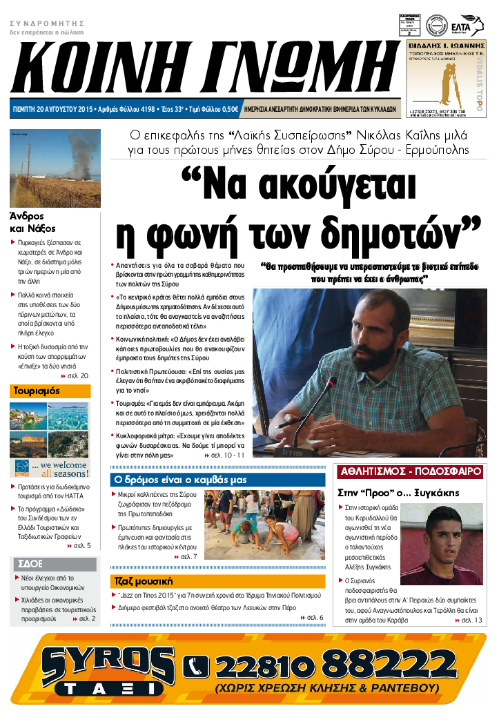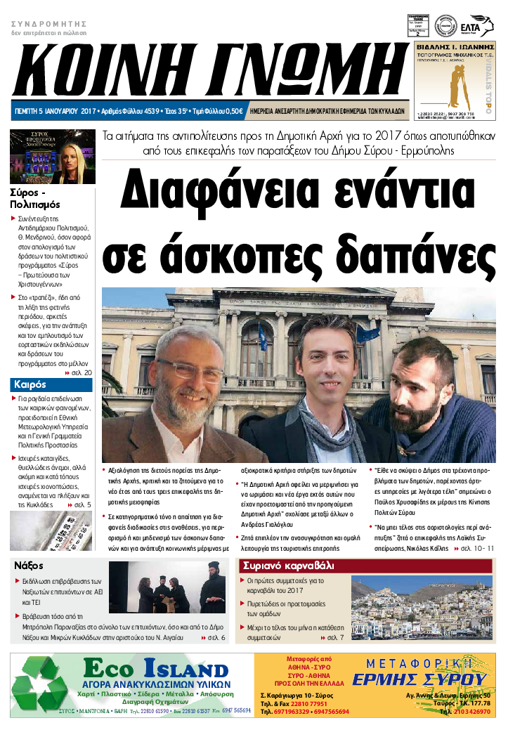 ΚΟΙΝΗ ΓΝΩΜΗ ΚΟΙΝΗ ΓΝΩΜΗ Ημερησια Εφημεριδα των Κυκλαδων