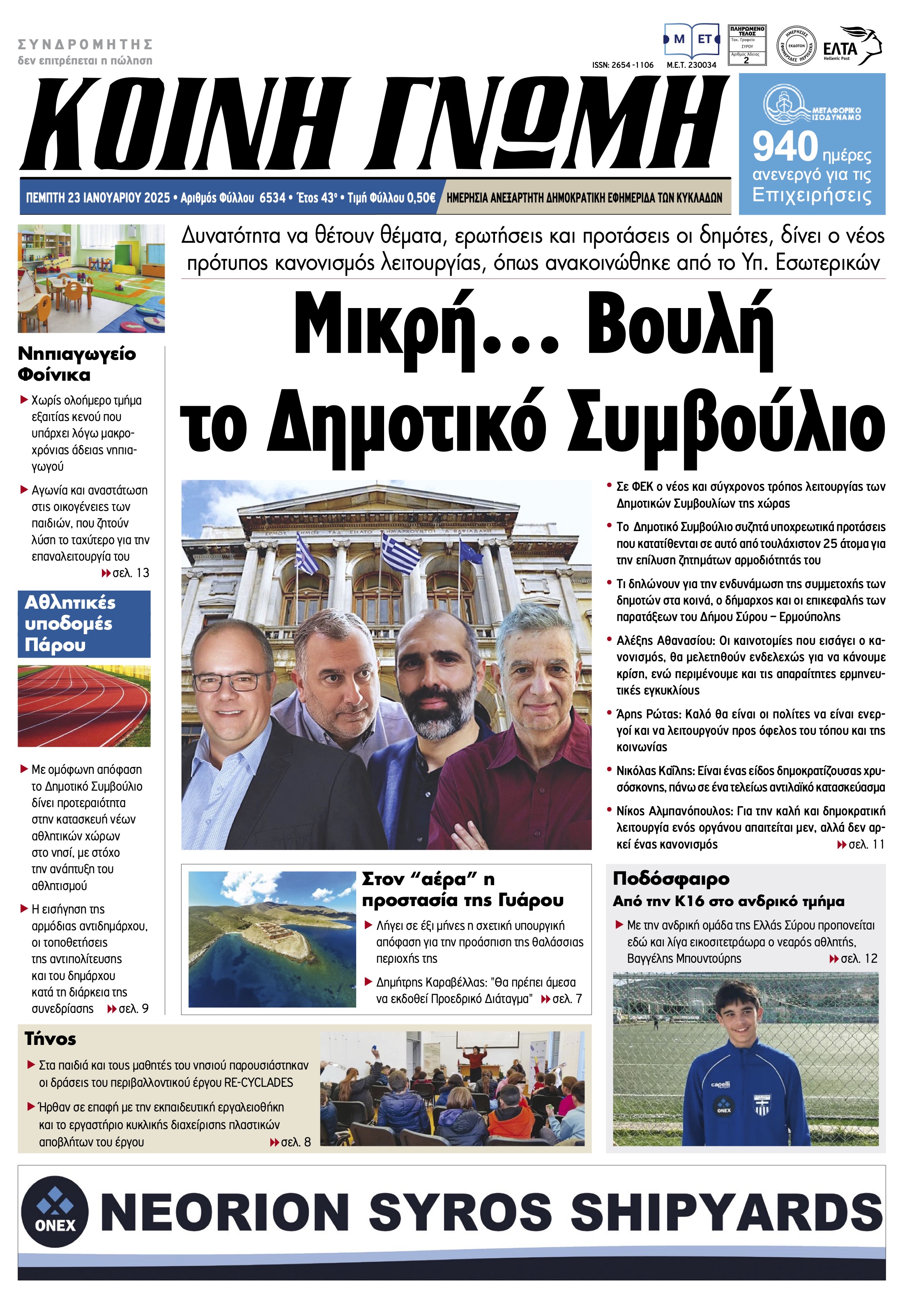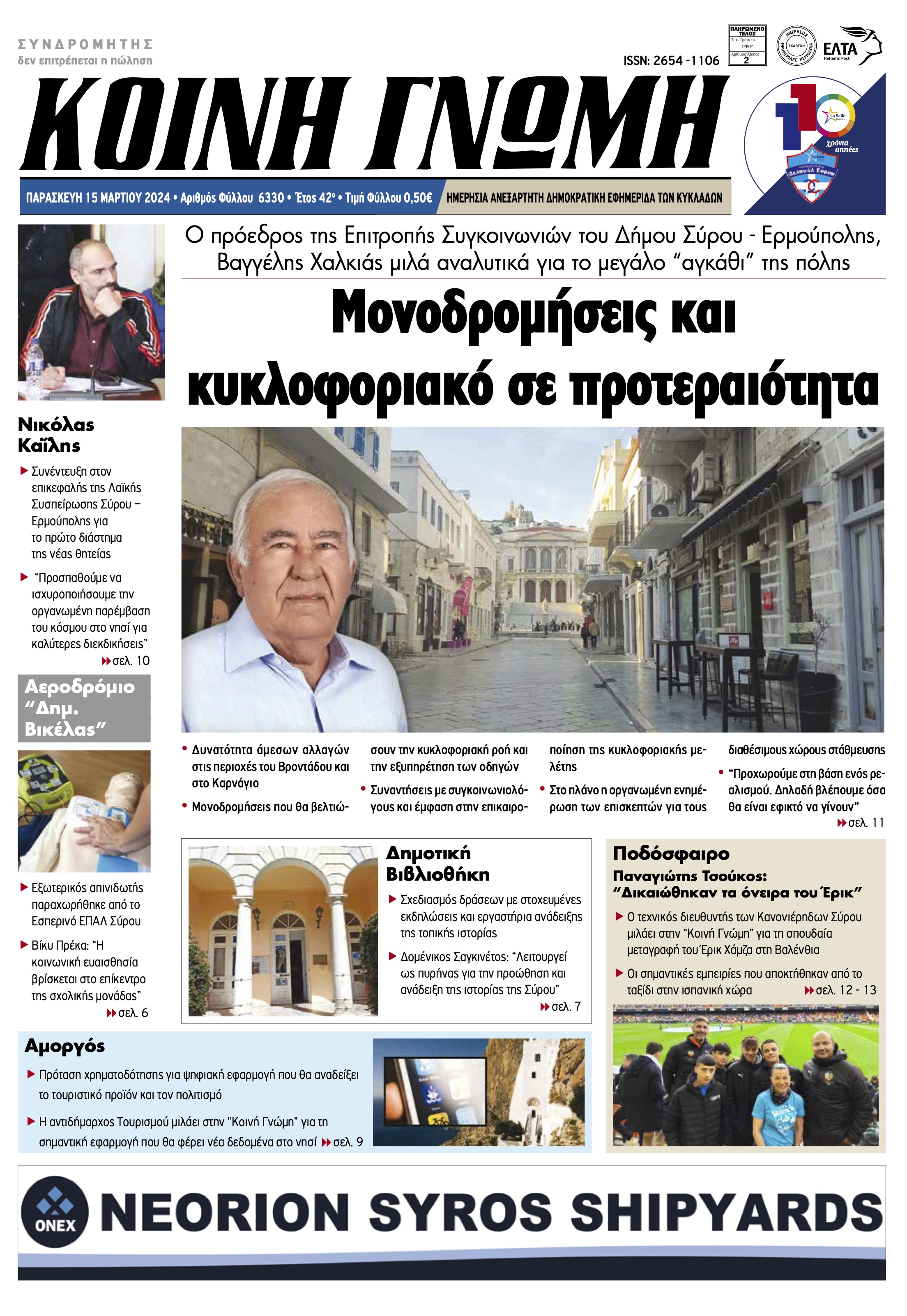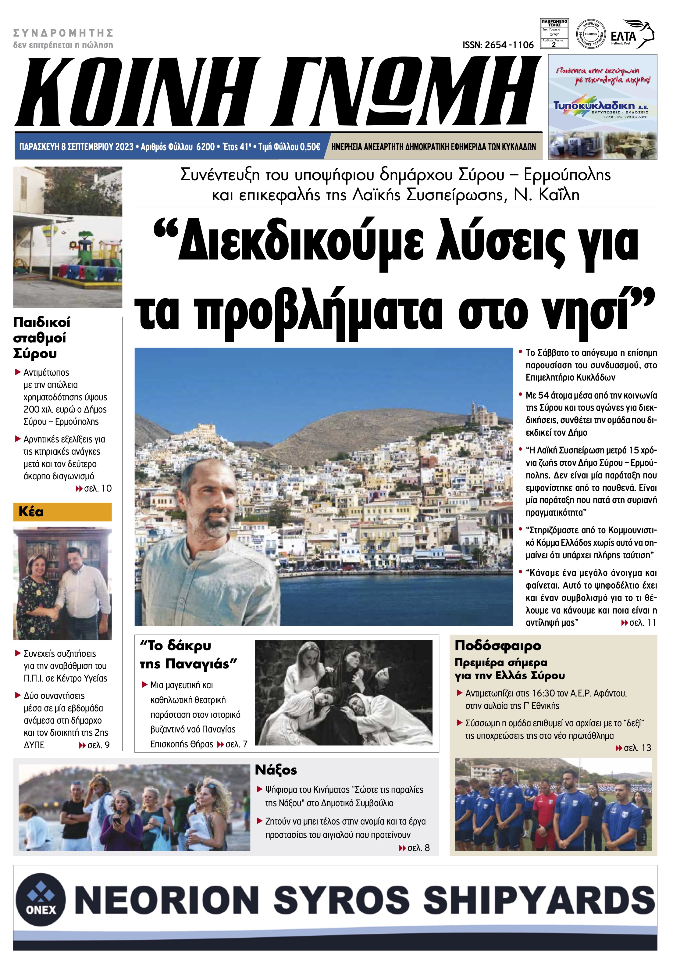 ΚΟΙΝΗ ΓΝΩΜΗ ΚΟΙΝΗ ΓΝΩΜΗ Ημερησια Εφημεριδα των Κυκλαδων
