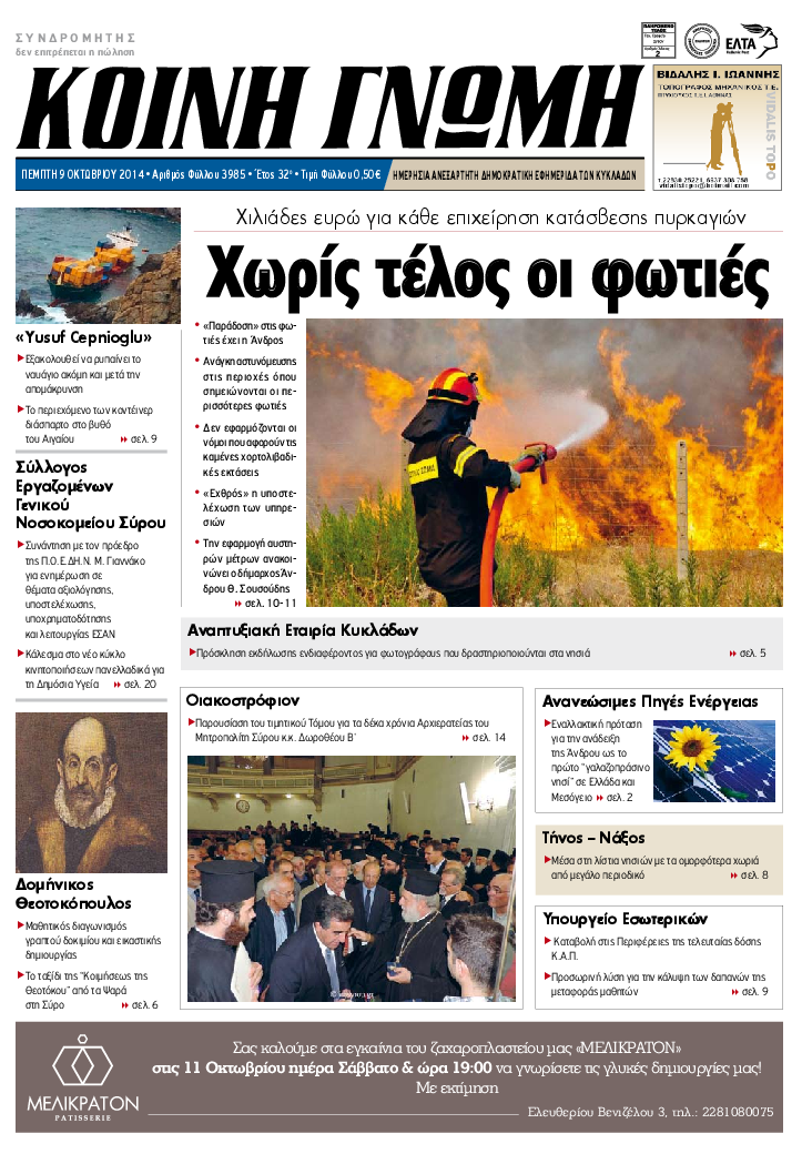 ΚΟΙΝΗ ΓΝΩΜΗ ΚΟΙΝΗ ΓΝΩΜΗ Ημερησια Εφημεριδα των Κυκλαδων