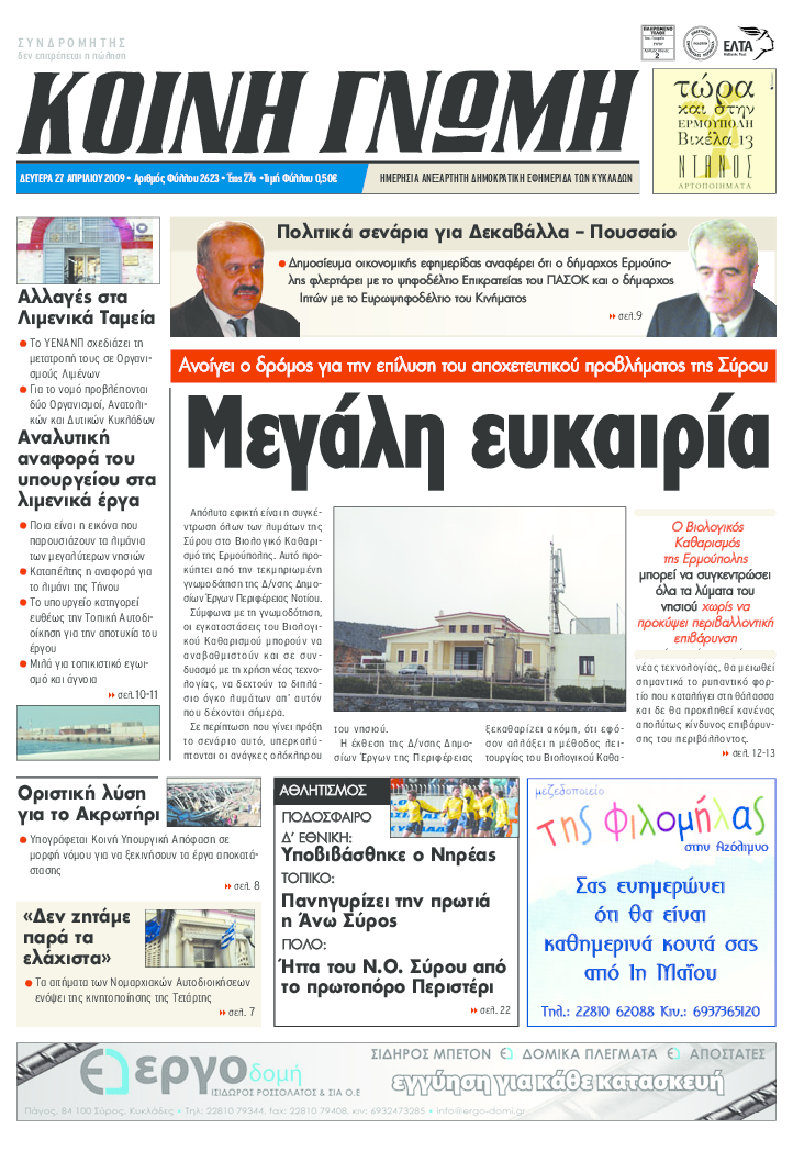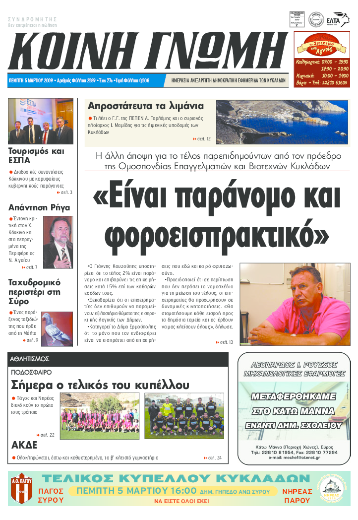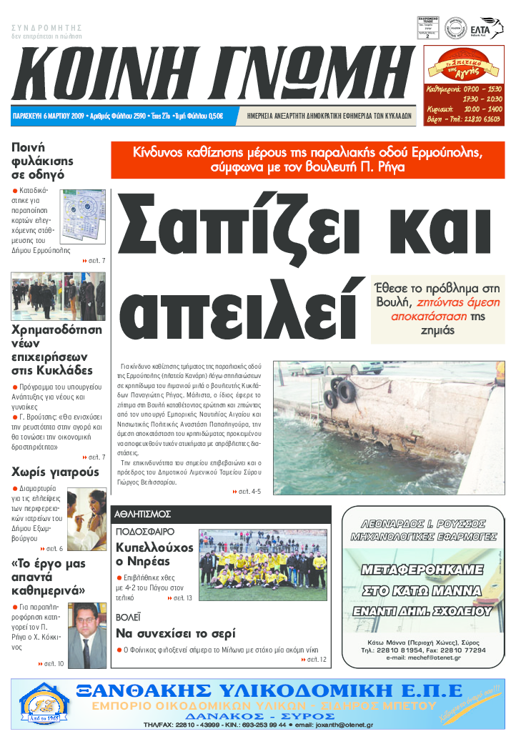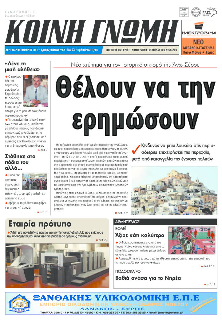 ΚΟΙΝΗ ΓΝΩΜΗ ΚΟΙΝΗ ΓΝΩΜΗ Ημερησια Εφημεριδα των Κυκλαδων