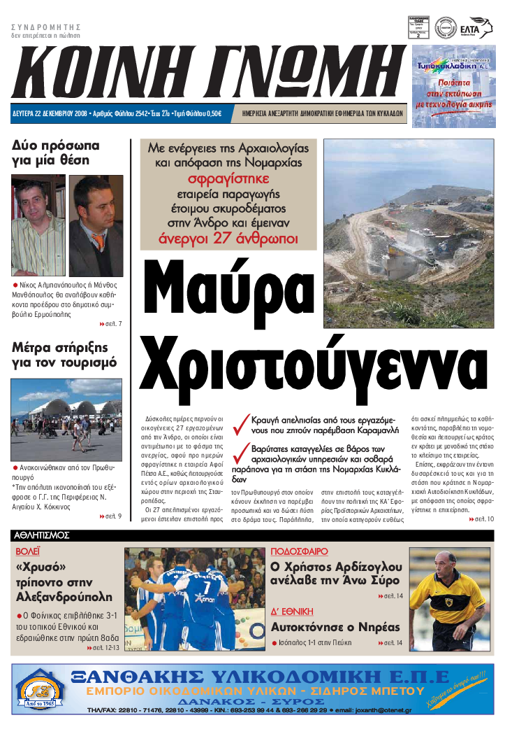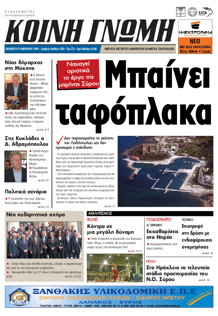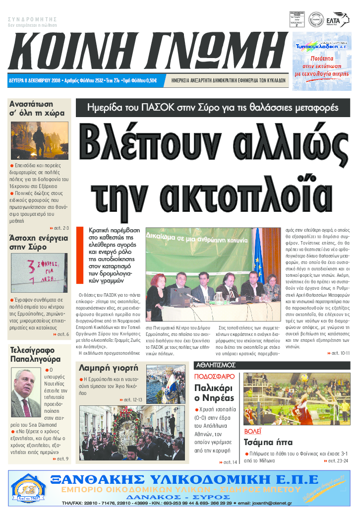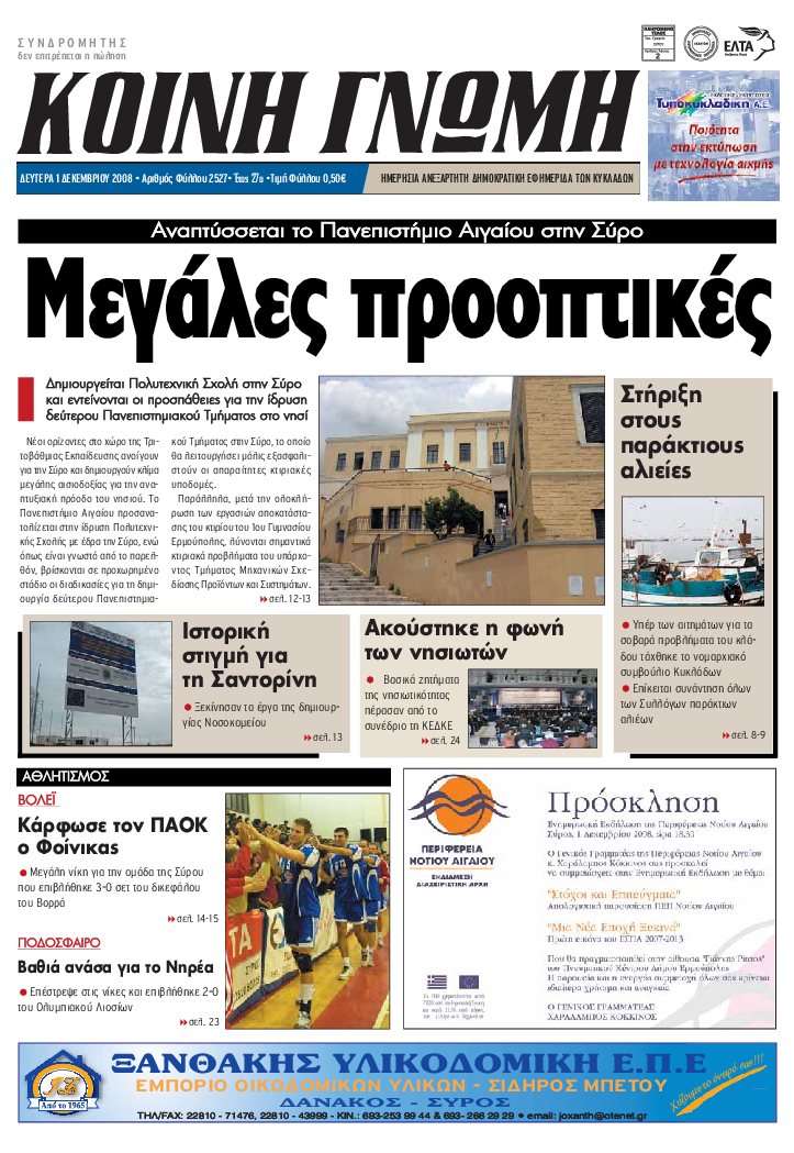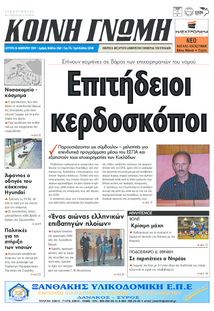 ΚΟΙΝΗ ΓΝΩΜΗ ΚΟΙΝΗ ΓΝΩΜΗ Ημερησια Εφημεριδα των Κυκλαδων