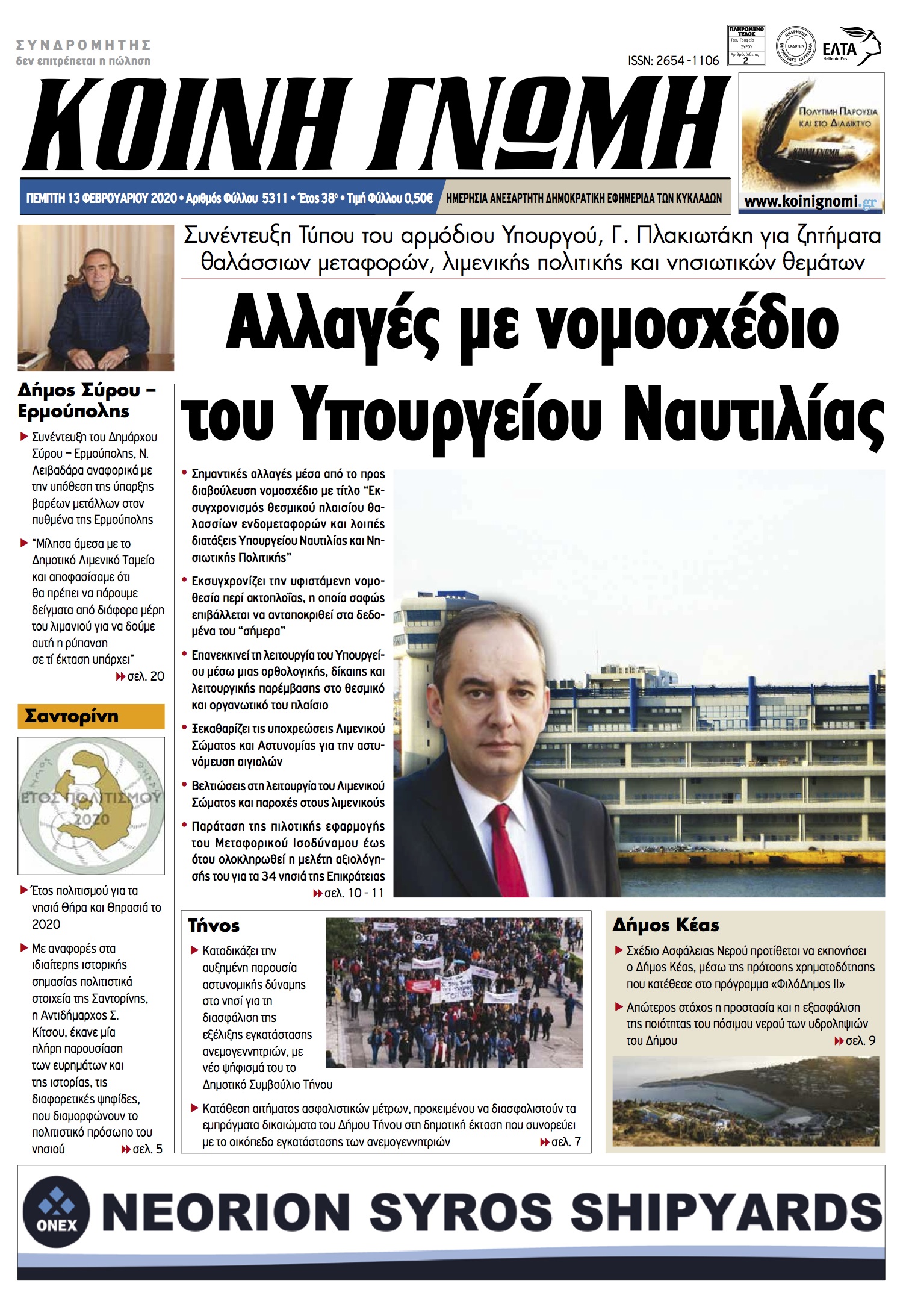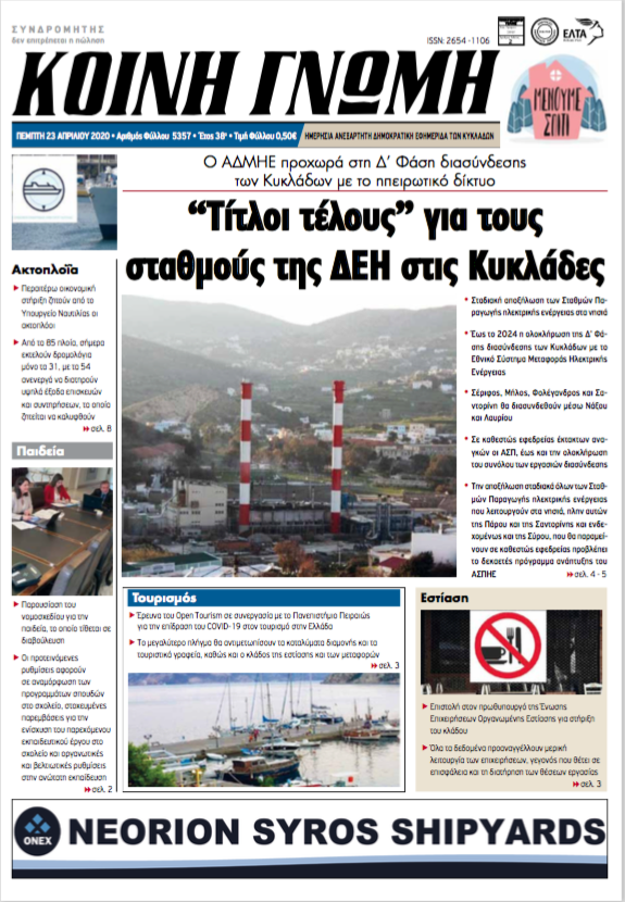 ΚΟΙΝΗ ΓΝΩΜΗ ΚΟΙΝΗ ΓΝΩΜΗ Ημερησια Εφημεριδα των Κυκλαδων