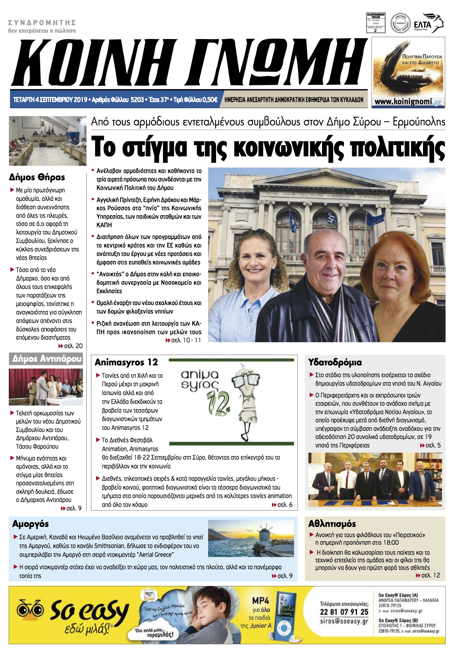 ΚΟΙΝΗ ΓΝΩΜΗ ΚΟΙΝΗ ΓΝΩΜΗ Ημερησια Εφημεριδα των Κυκλαδων