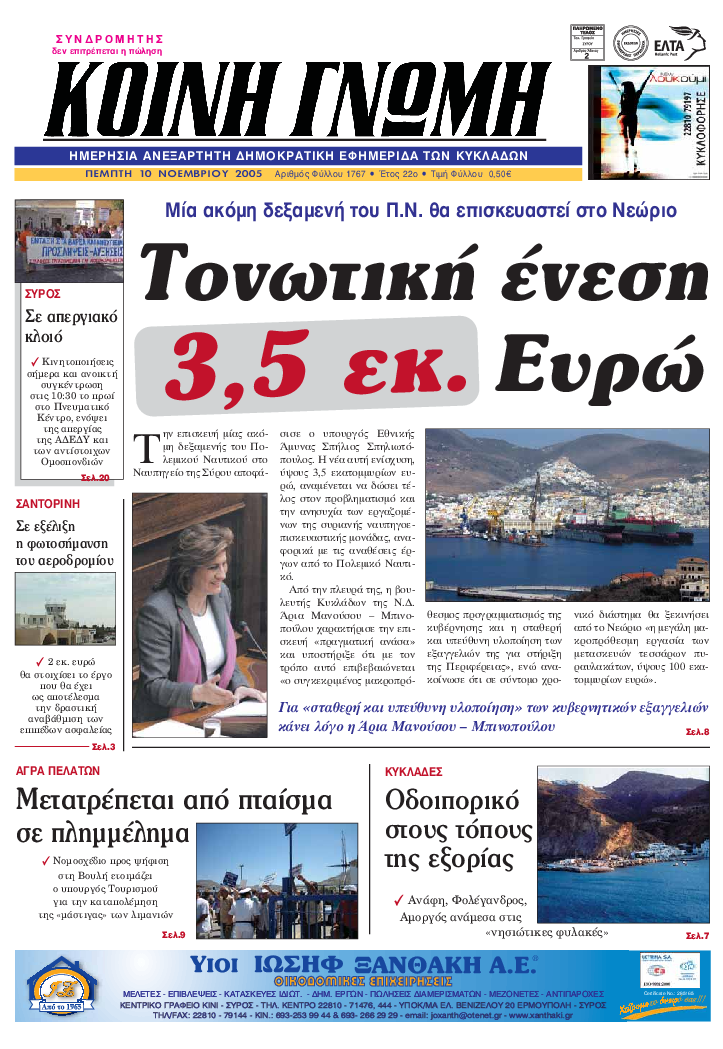 ΚΟΙΝΗ ΓΝΩΜΗ ΚΟΙΝΗ ΓΝΩΜΗ Ημερησια Εφημεριδα των Κυκλαδων