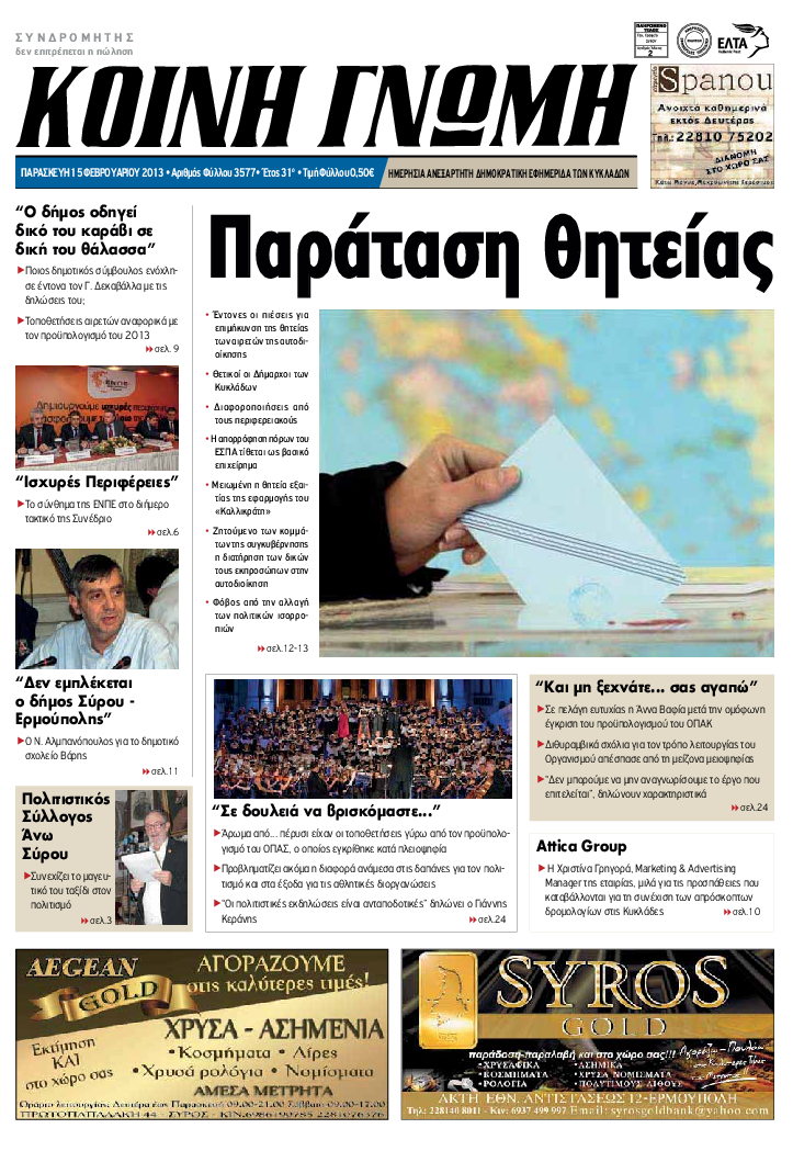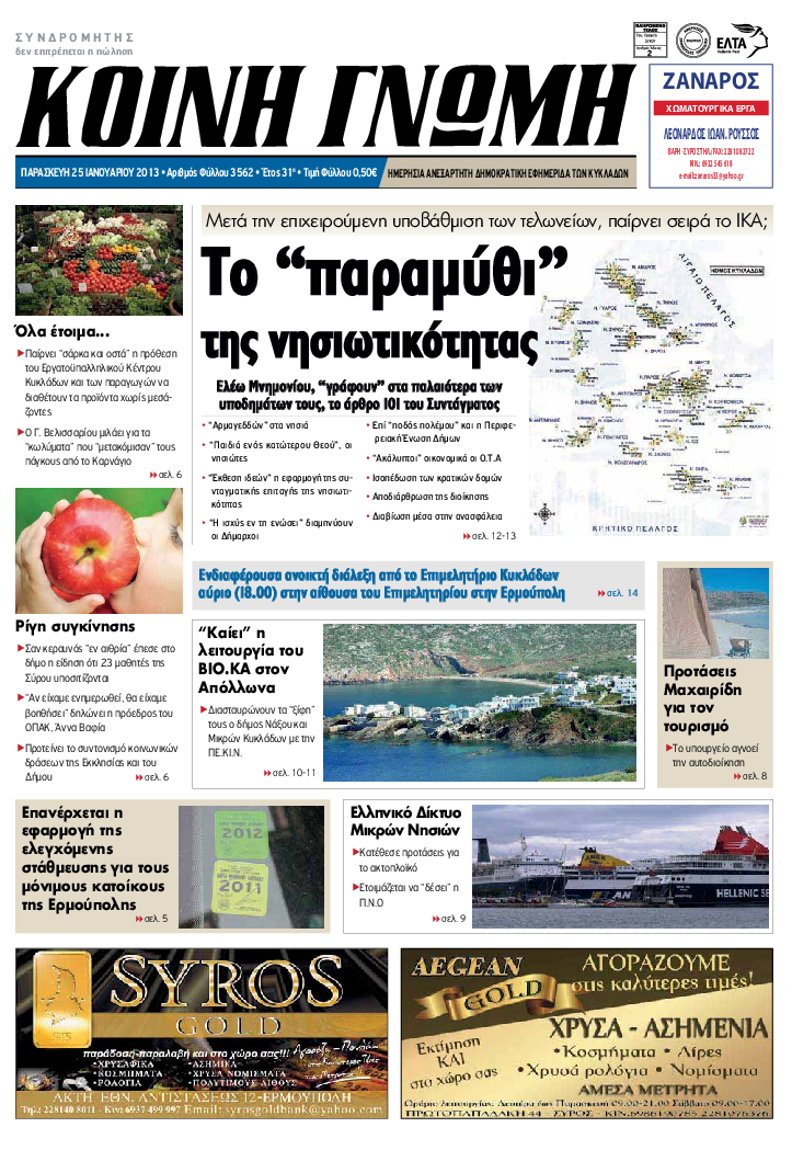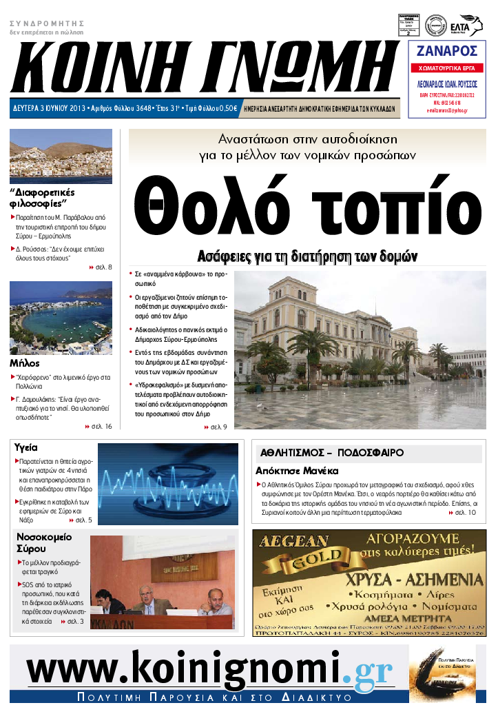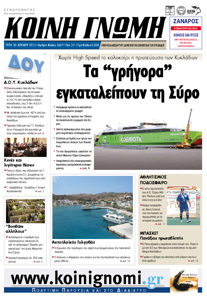 ΚΟΙΝΗ ΓΝΩΜΗ ΚΟΙΝΗ ΓΝΩΜΗ Ημερησια Εφημεριδα των Κυκλαδων