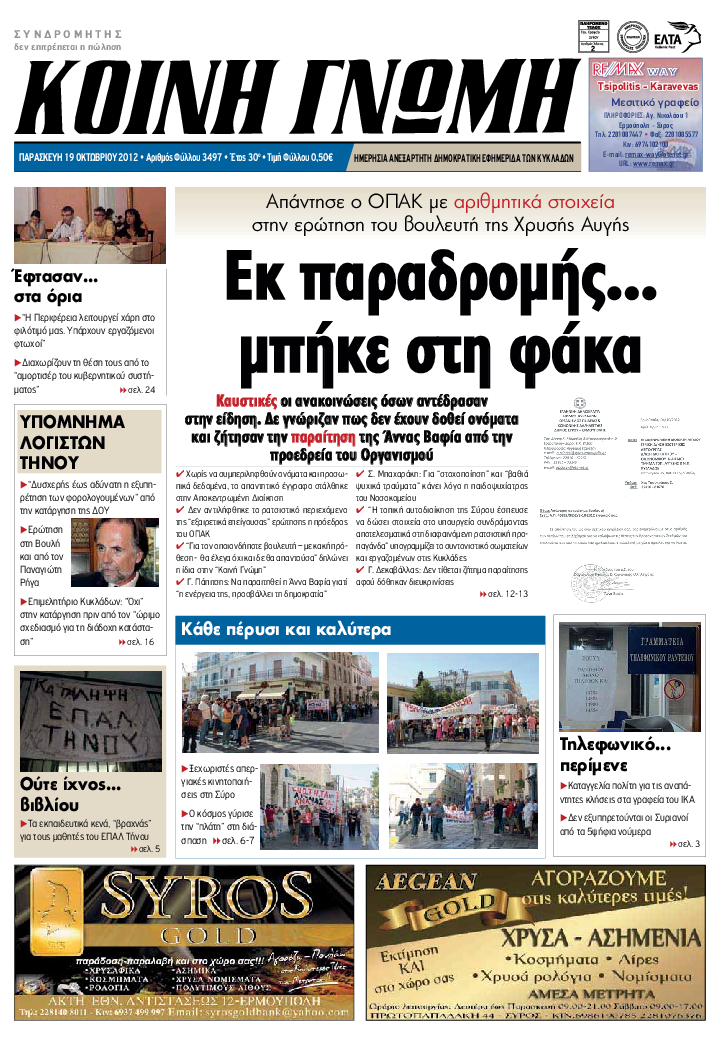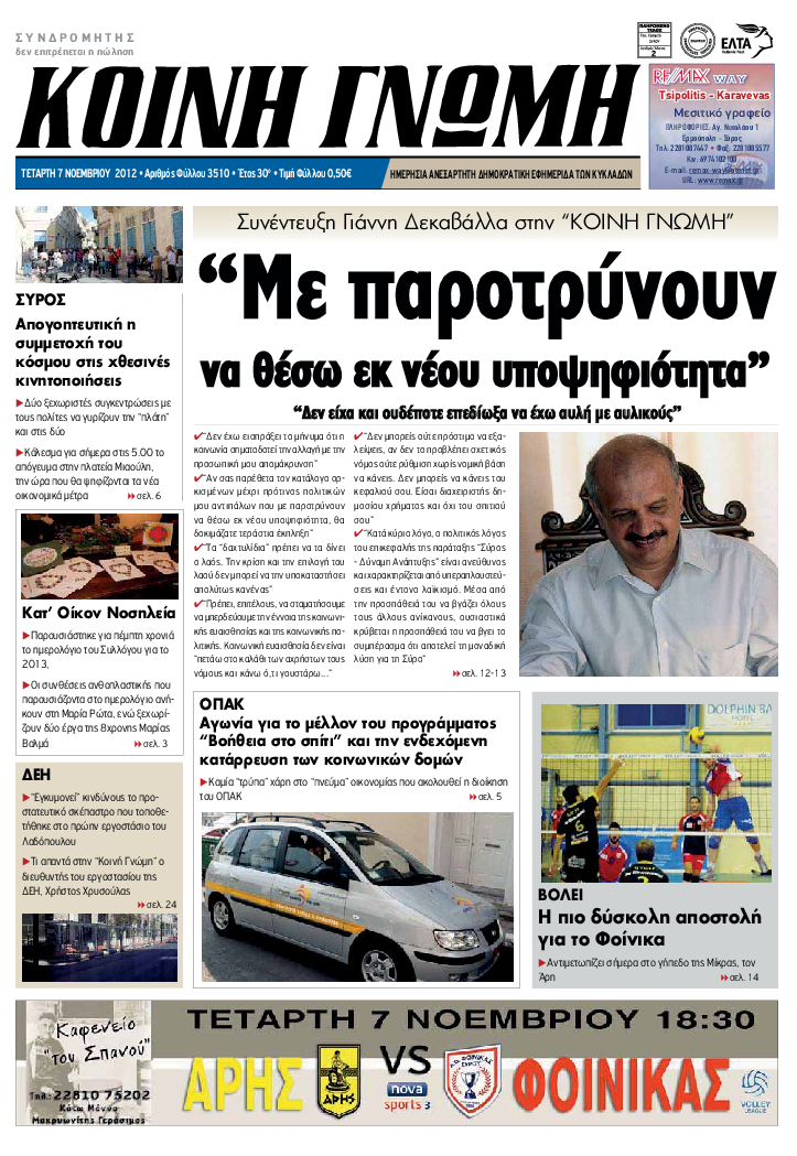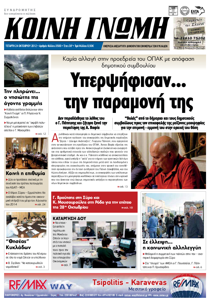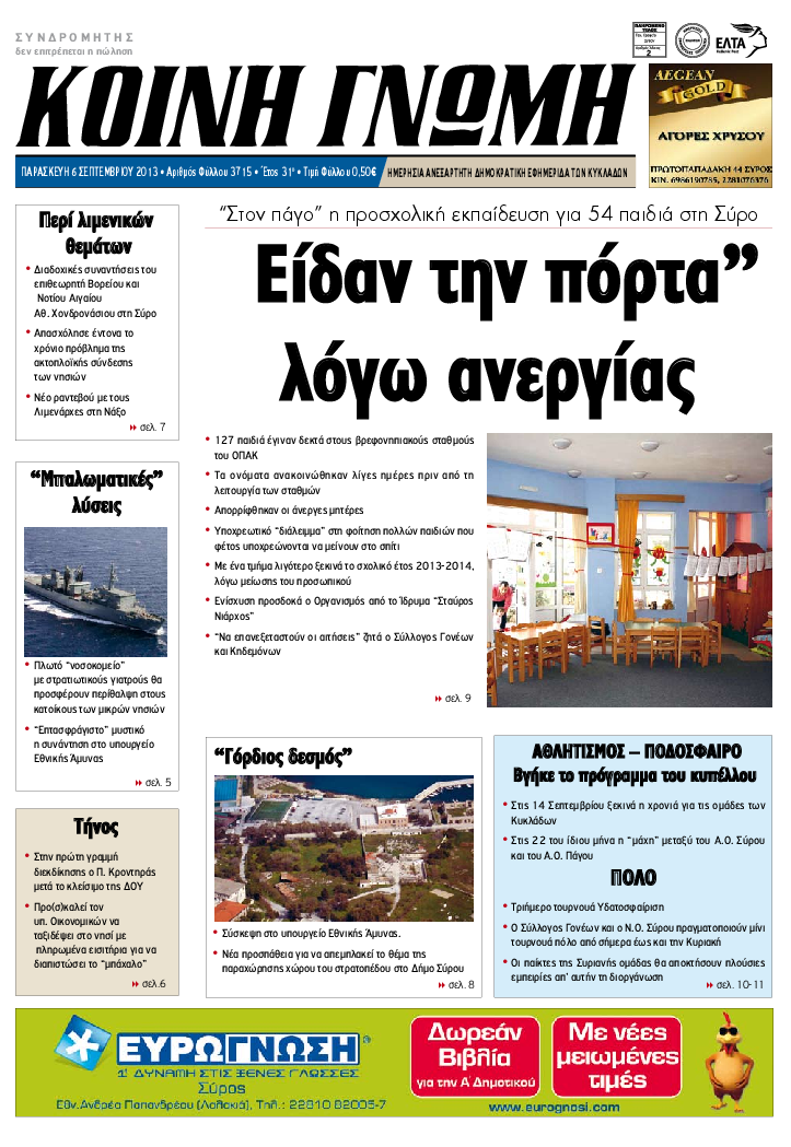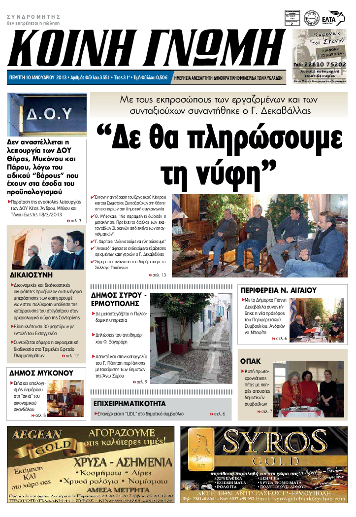 ΚΟΙΝΗ ΓΝΩΜΗ ΚΟΙΝΗ ΓΝΩΜΗ Ημερησια Εφημεριδα των Κυκλαδων