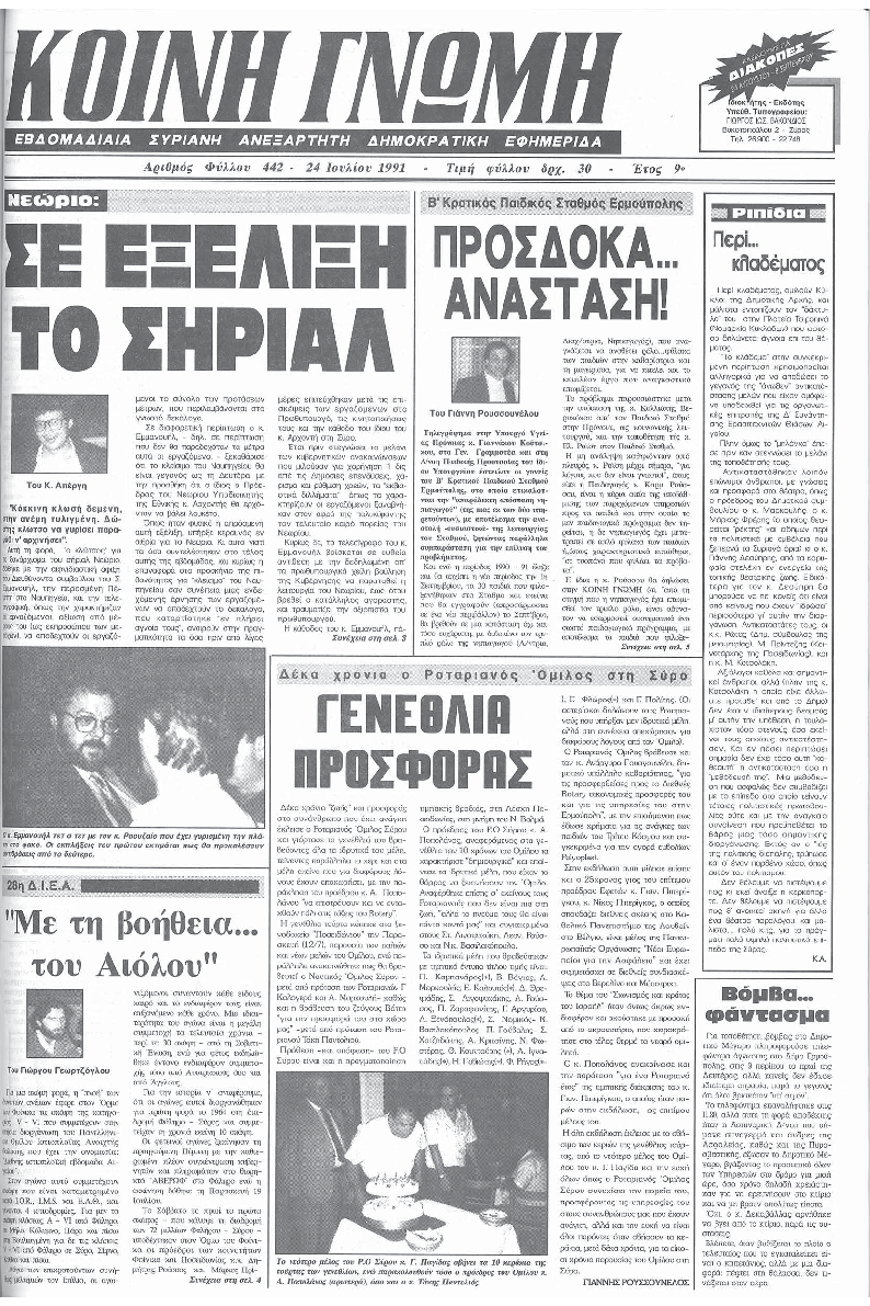 ΚΟΙΝΗ ΓΝΩΜΗ ΚΟΙΝΗ ΓΝΩΜΗ Ημερησια Εφημεριδα των Κυκλαδων