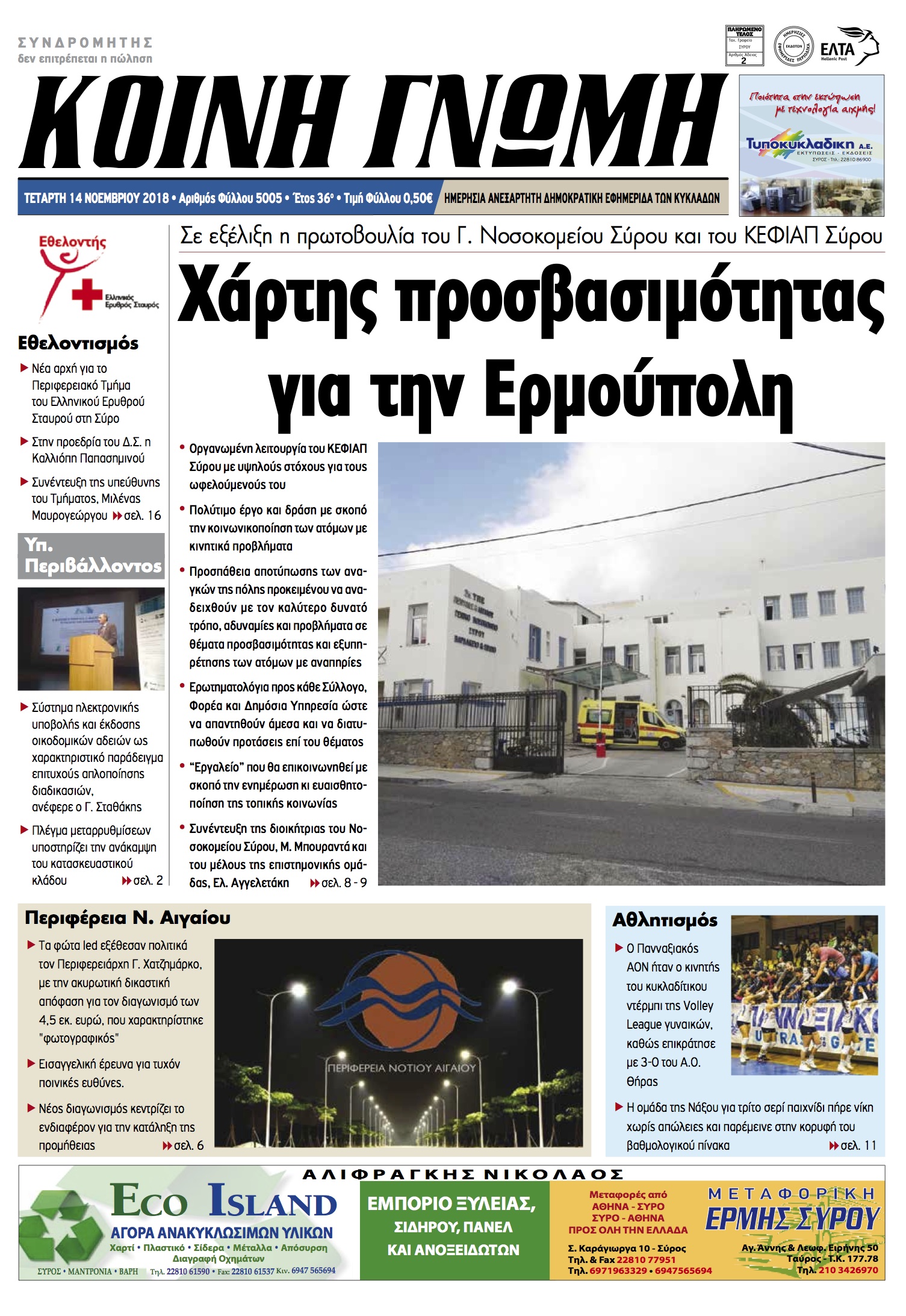 ΚΟΙΝΗ ΓΝΩΜΗ ΚΟΙΝΗ ΓΝΩΜΗ Ημερησια Εφημεριδα των Κυκλαδων