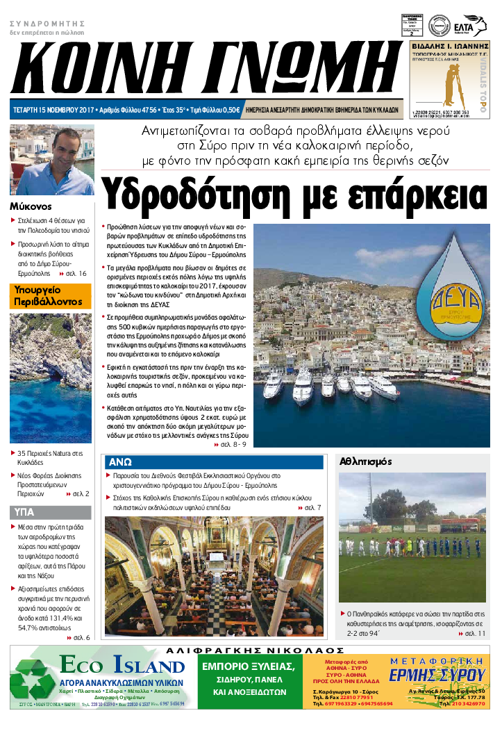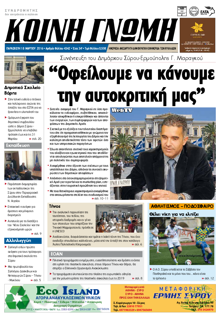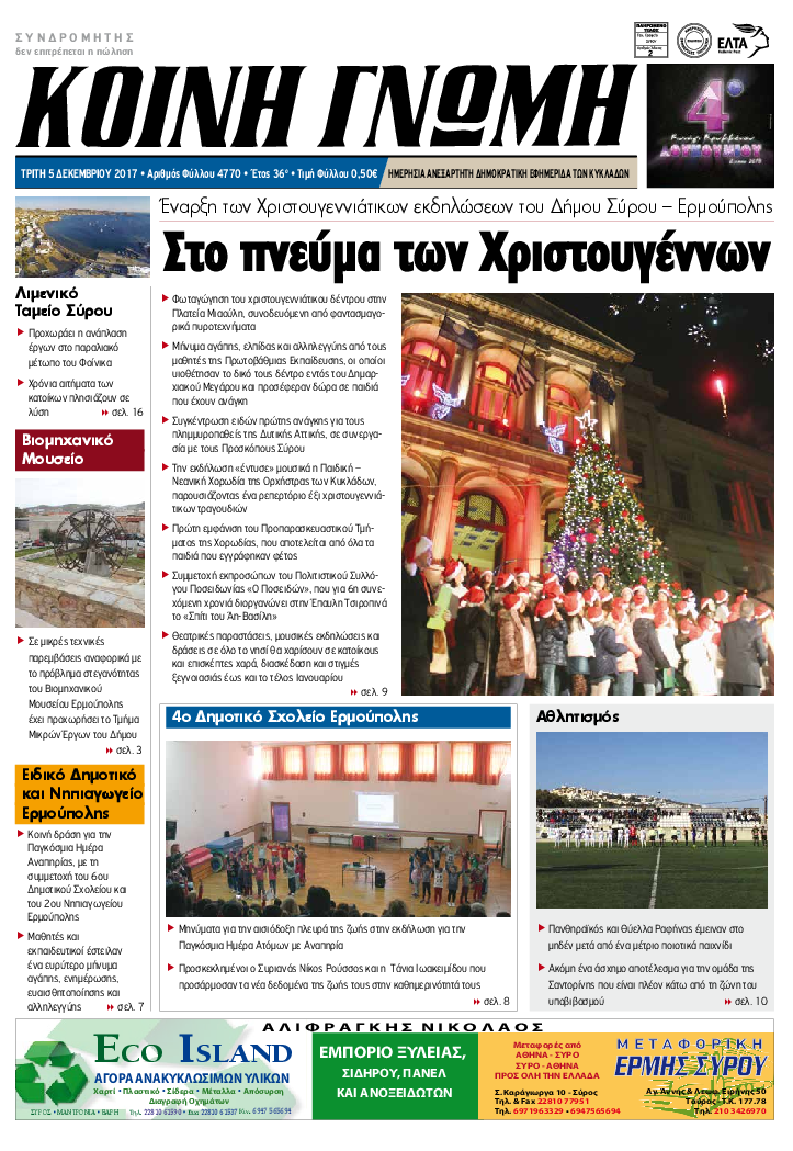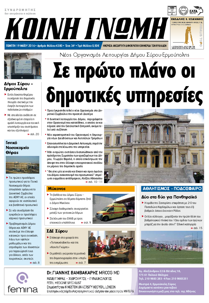 ΚΟΙΝΗ ΓΝΩΜΗ ΚΟΙΝΗ ΓΝΩΜΗ Ημερησια Εφημεριδα των Κυκλαδων