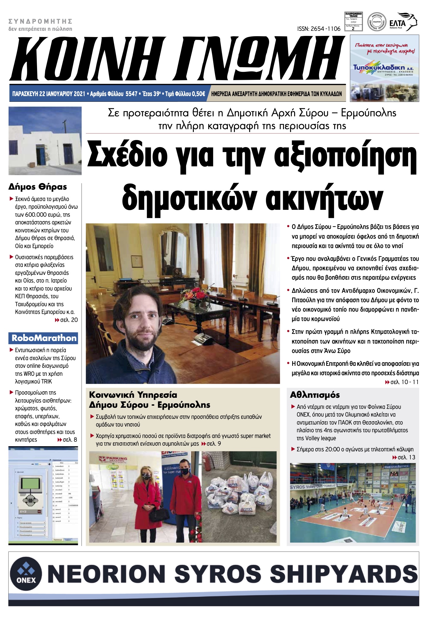 ΚΟΙΝΗ ΓΝΩΜΗ ΚΟΙΝΗ ΓΝΩΜΗ Ημερησια Εφημεριδα των Κυκλαδων
