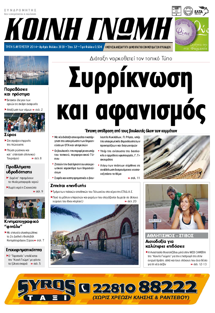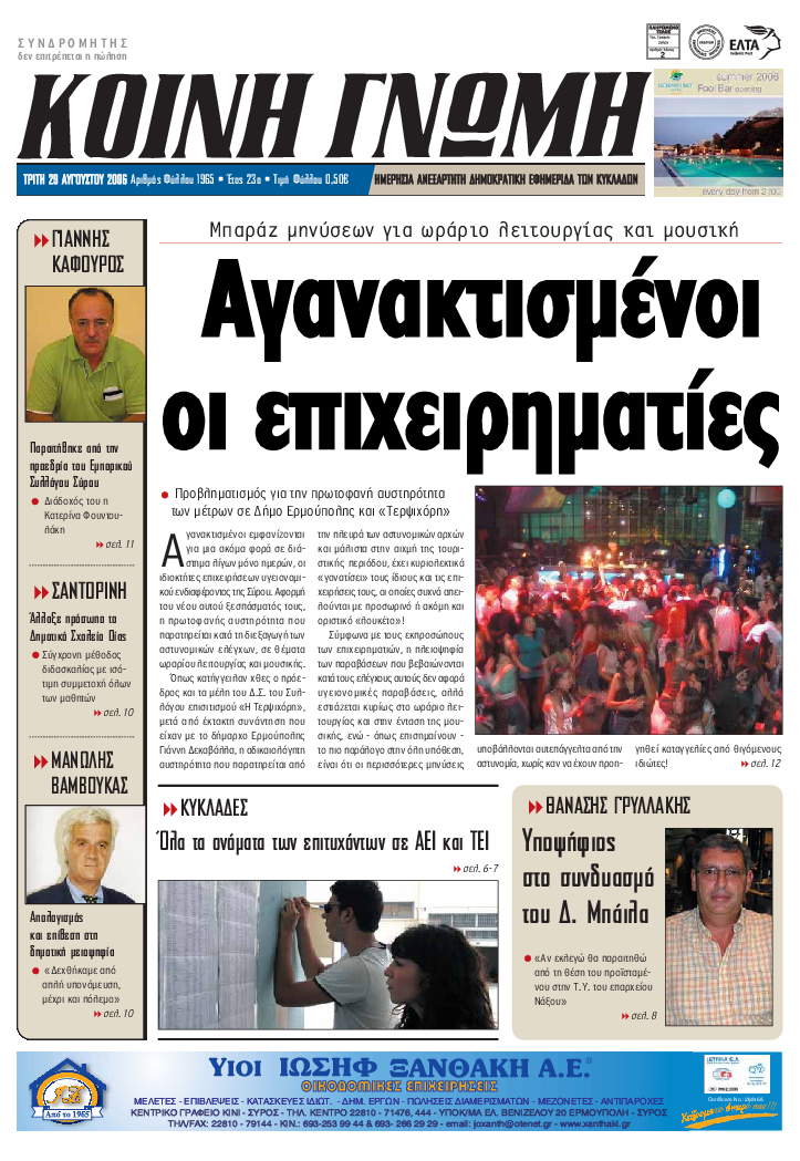 ΚΟΙΝΗ ΓΝΩΜΗ ΚΟΙΝΗ ΓΝΩΜΗ Ημερησια Εφημεριδα των Κυκλαδων