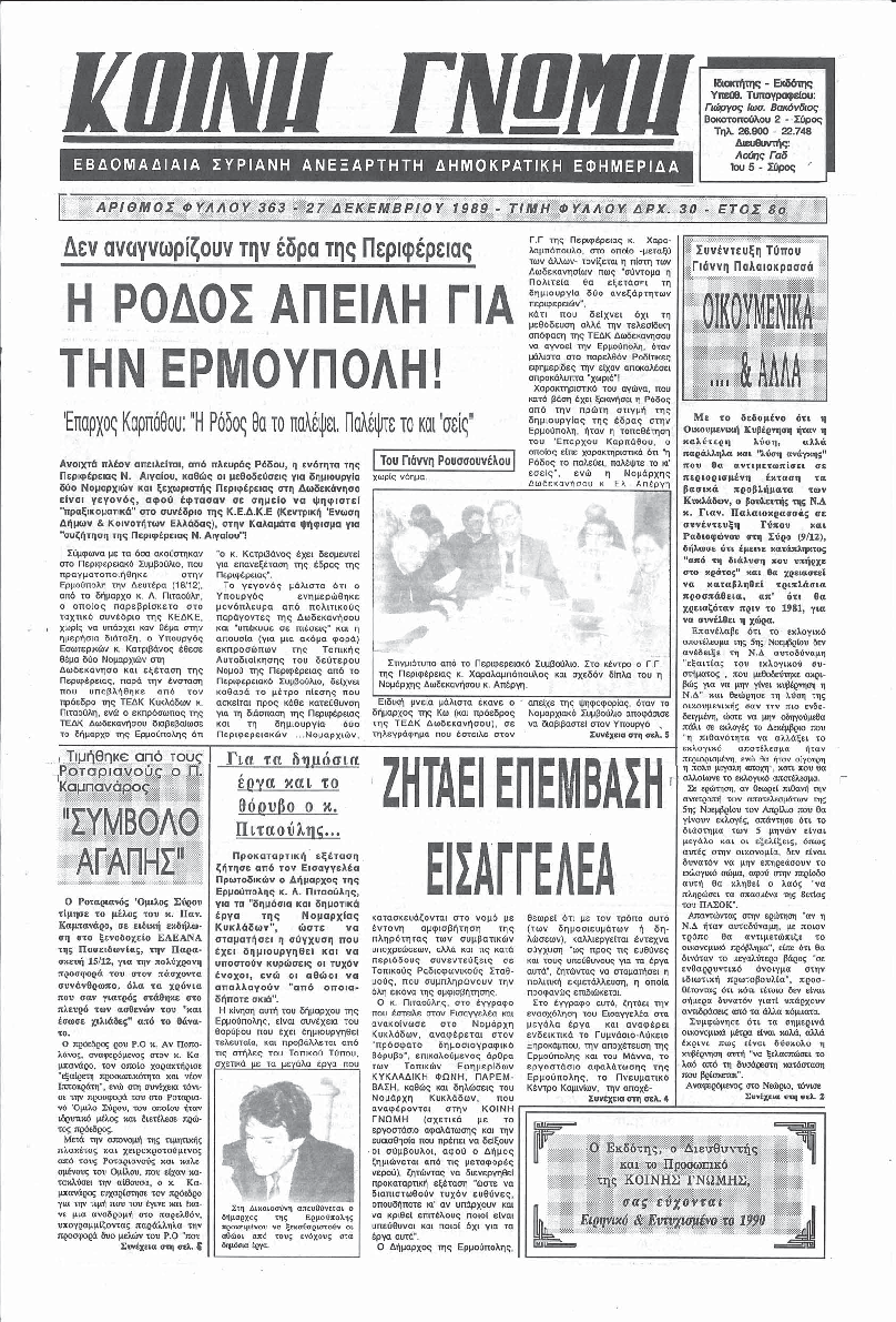 ΚΟΙΝΗ ΓΝΩΜΗ ΚΟΙΝΗ ΓΝΩΜΗ Ημερησια Εφημεριδα των Κυκλαδων