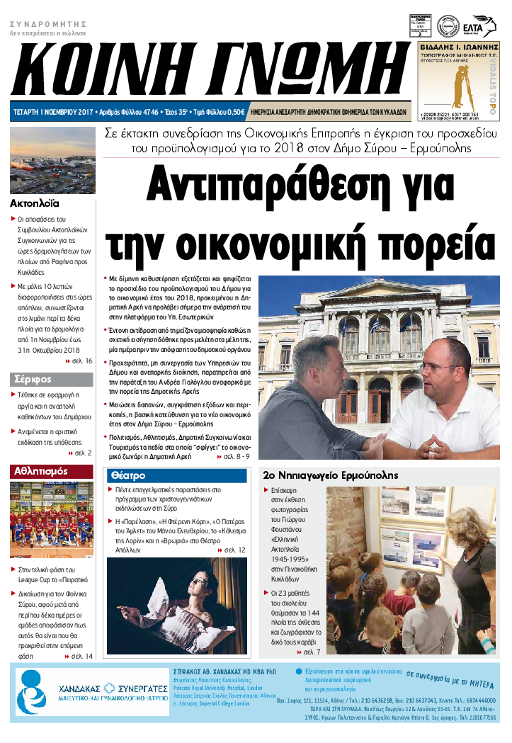 ΚΟΙΝΗ ΓΝΩΜΗ ΚΟΙΝΗ ΓΝΩΜΗ Ημερησια Εφημεριδα των Κυκλαδων