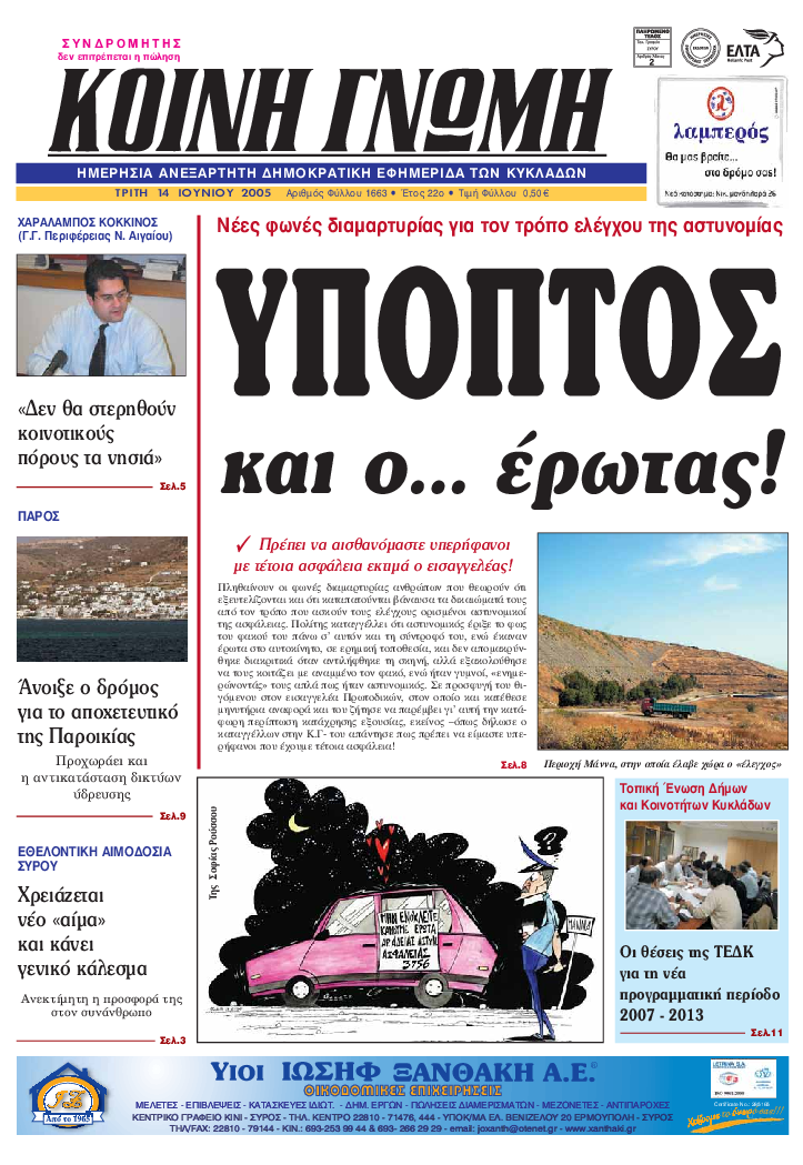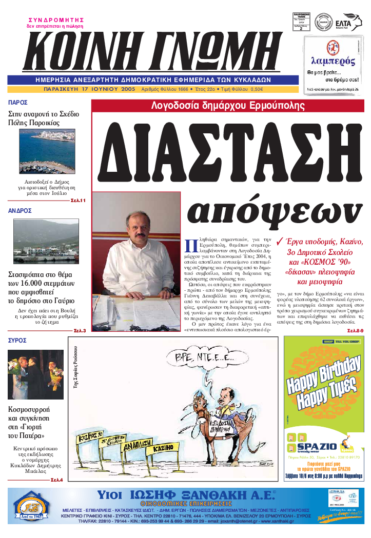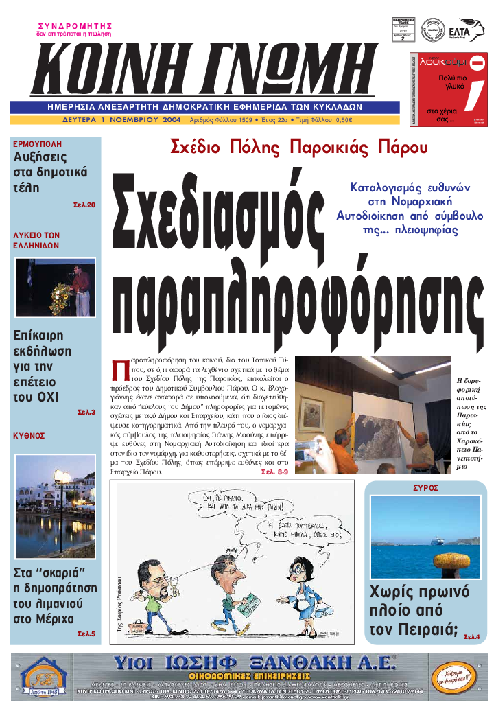 ΚΟΙΝΗ ΓΝΩΜΗ ΚΟΙΝΗ ΓΝΩΜΗ Ημερησια Εφημεριδα των Κυκλαδων