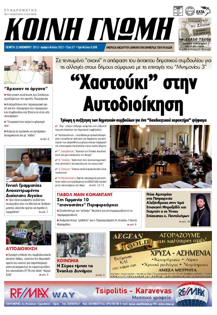 ΚΟΙΝΗ ΓΝΩΜΗ ΚΟΙΝΗ ΓΝΩΜΗ Ημερησια Εφημεριδα των Κυκλαδων