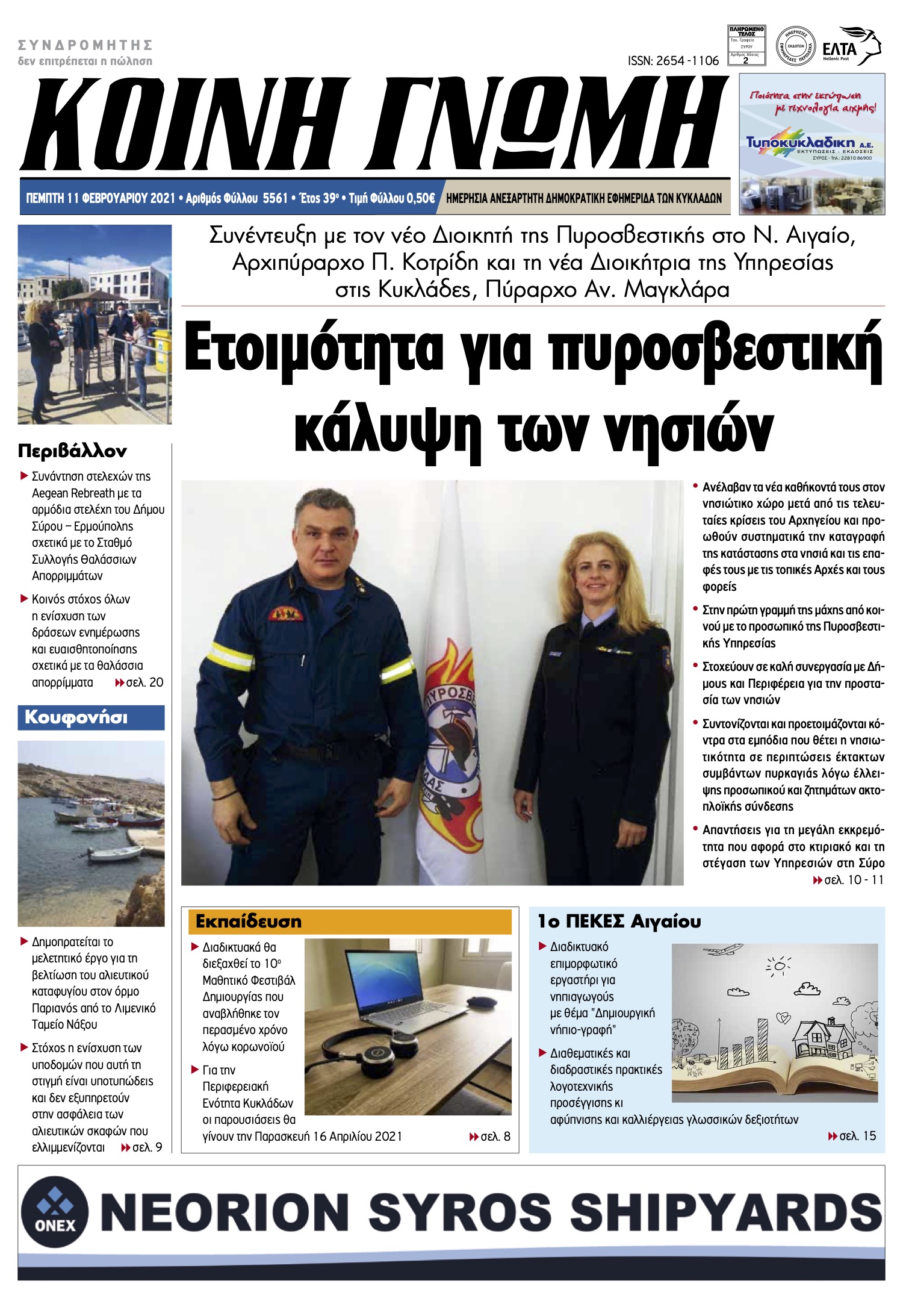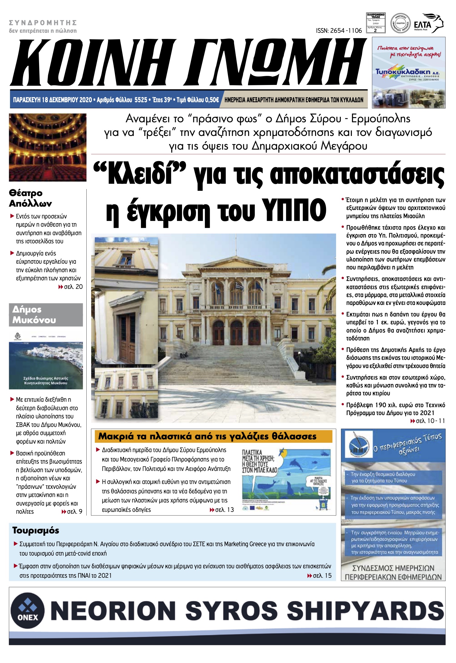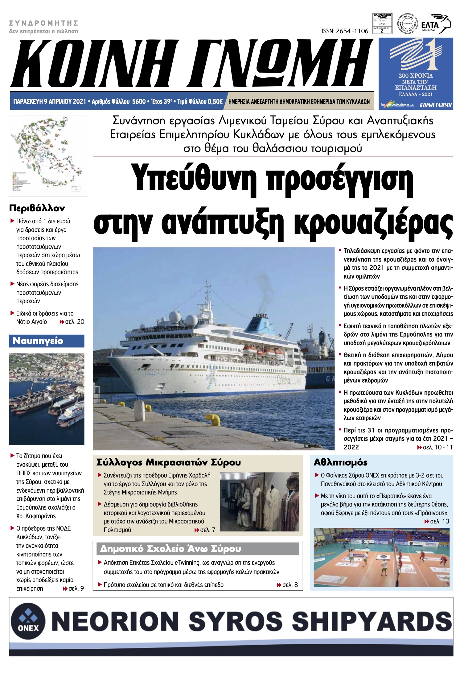 ΚΟΙΝΗ ΓΝΩΜΗ ΚΟΙΝΗ ΓΝΩΜΗ Ημερησια Εφημεριδα των Κυκλαδων