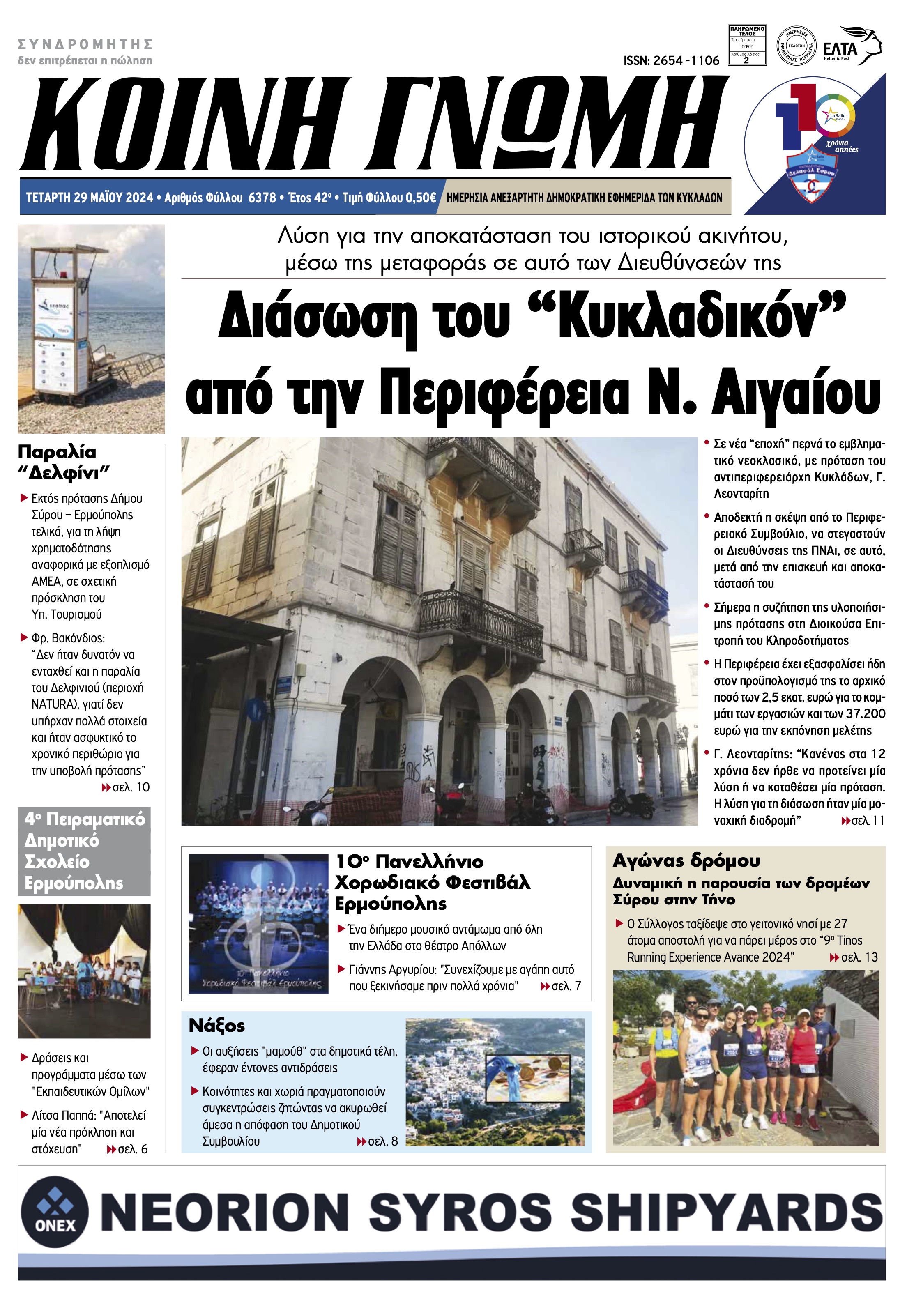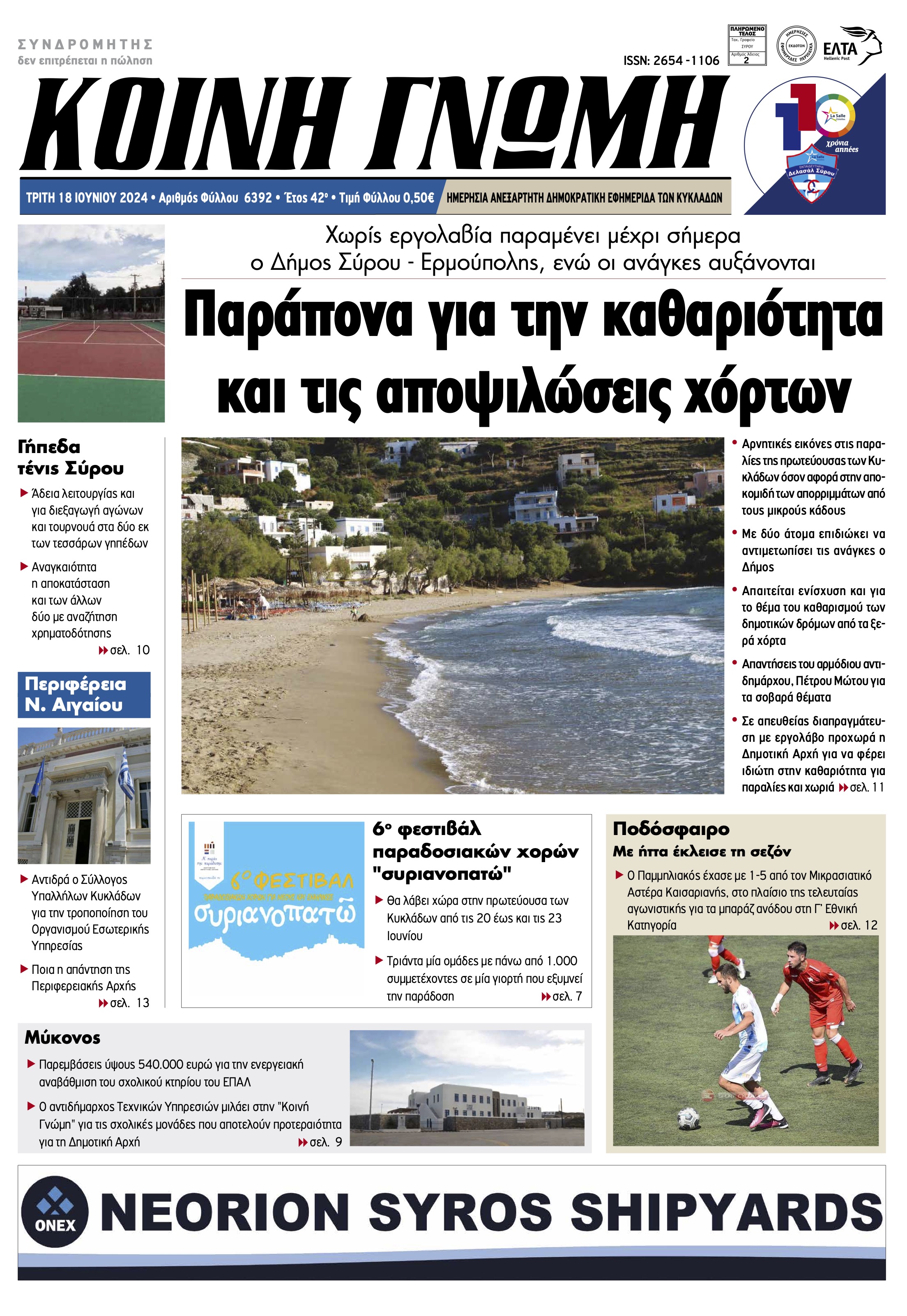 ΚΟΙΝΗ ΓΝΩΜΗ ΚΟΙΝΗ ΓΝΩΜΗ Ημερησια Εφημεριδα των Κυκλαδων