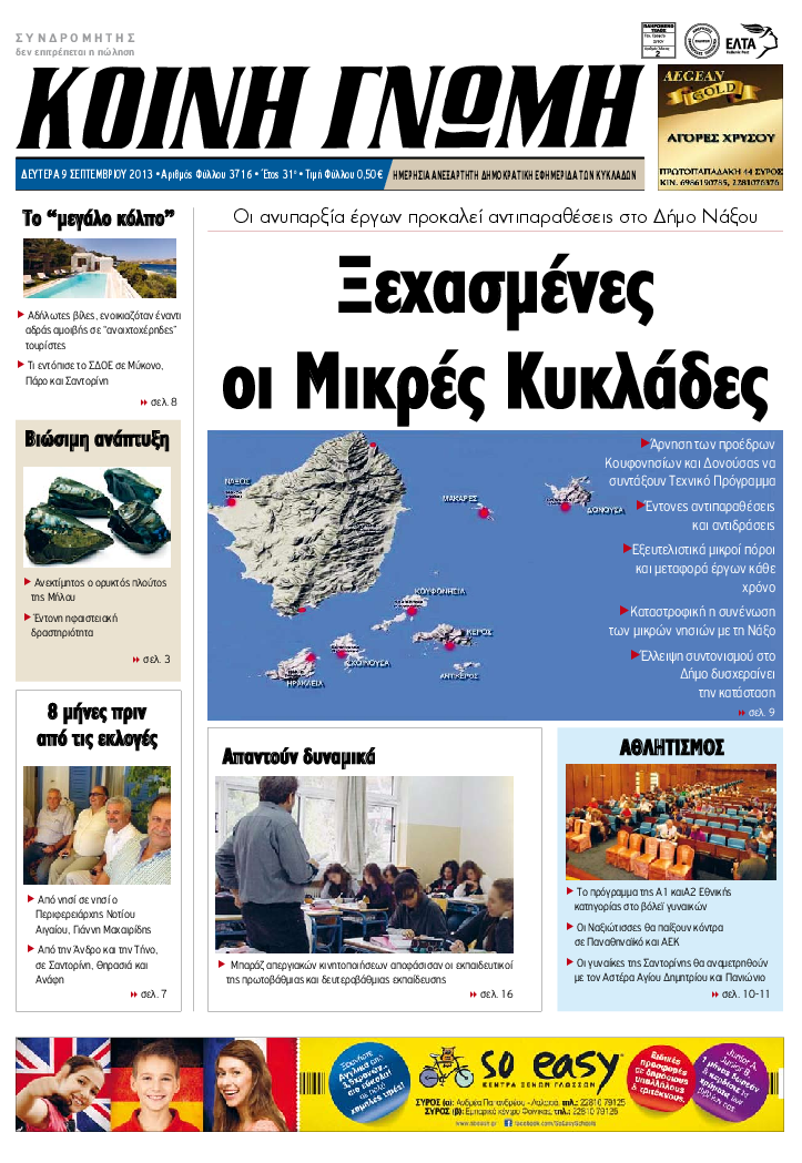 ΚΟΙΝΗ ΓΝΩΜΗ ΚΟΙΝΗ ΓΝΩΜΗ Ημερησια Εφημεριδα των Κυκλαδων
