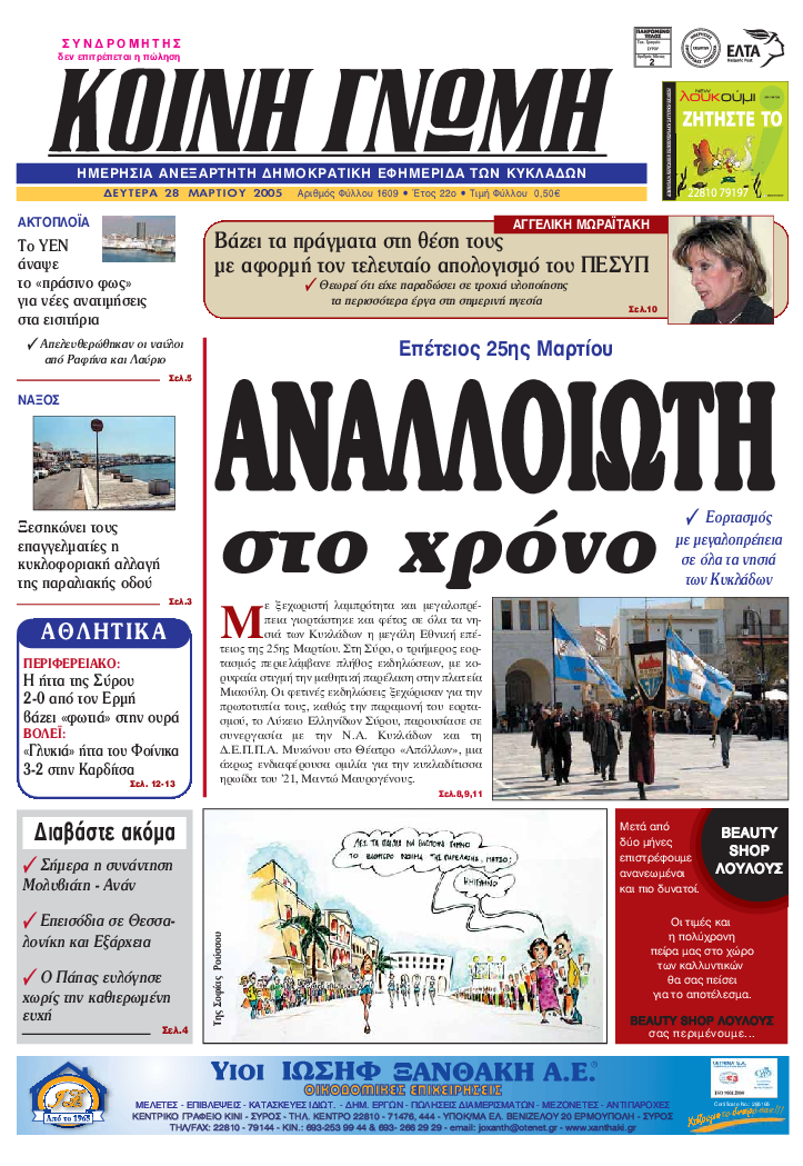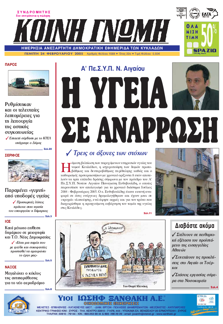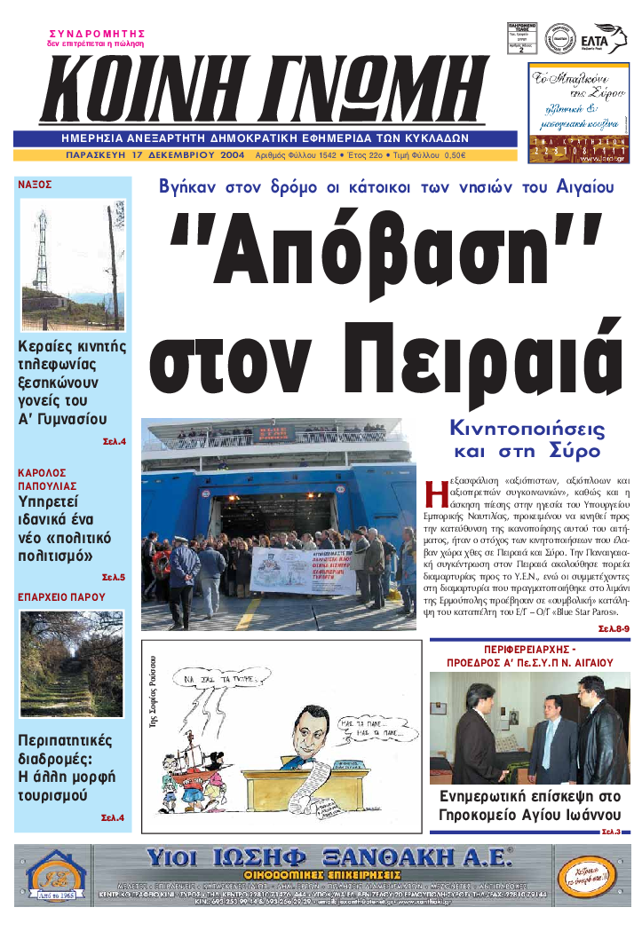 ΚΟΙΝΗ ΓΝΩΜΗ ΚΟΙΝΗ ΓΝΩΜΗ Ημερησια Εφημεριδα των Κυκλαδων