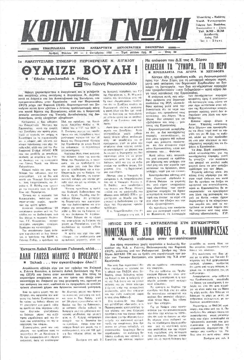 ΚΟΙΝΗ ΓΝΩΜΗ ΚΟΙΝΗ ΓΝΩΜΗ Ημερησια Εφημεριδα των Κυκλαδων