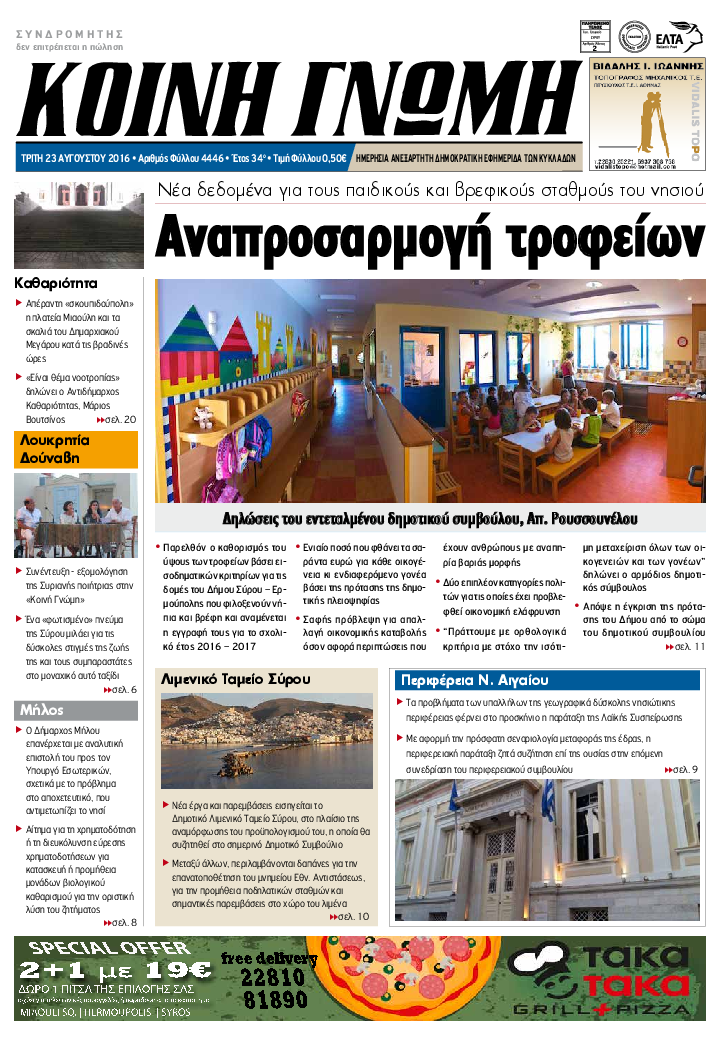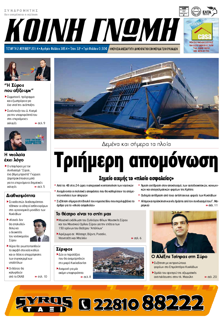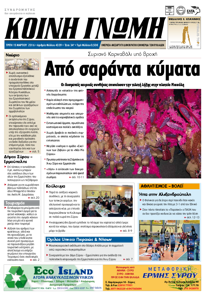 ΚΟΙΝΗ ΓΝΩΜΗ ΚΟΙΝΗ ΓΝΩΜΗ Ημερησια Εφημεριδα των Κυκλαδων