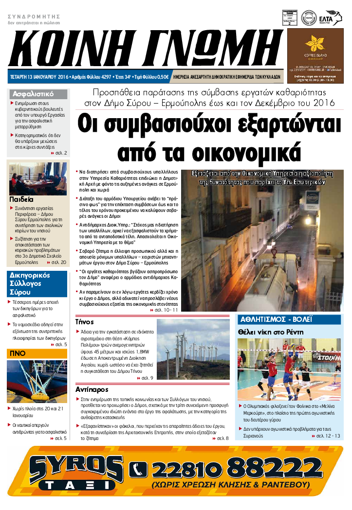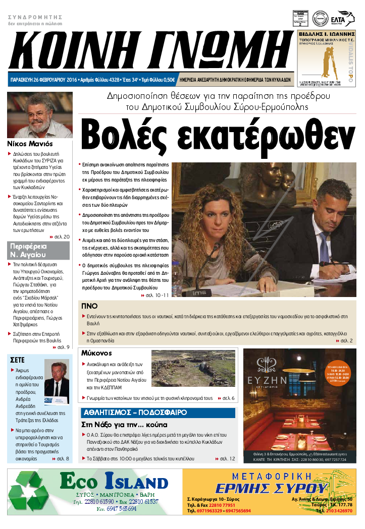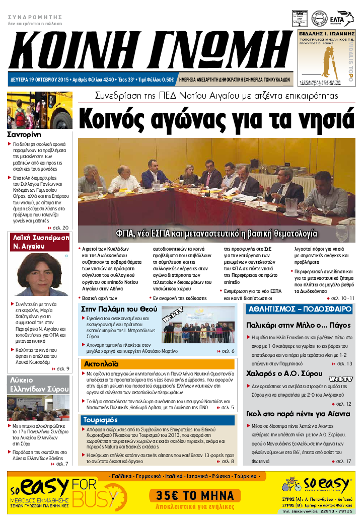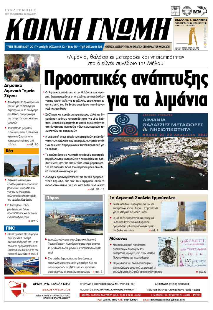 ΚΟΙΝΗ ΓΝΩΜΗ ΚΟΙΝΗ ΓΝΩΜΗ Ημερησια Εφημεριδα των Κυκλαδων