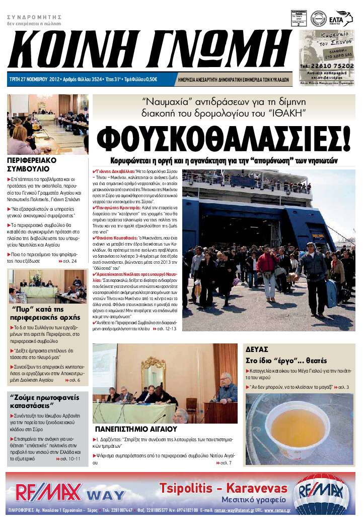 ΚΟΙΝΗ ΓΝΩΜΗ ΚΟΙΝΗ ΓΝΩΜΗ Ημερησια Εφημεριδα των Κυκλαδων