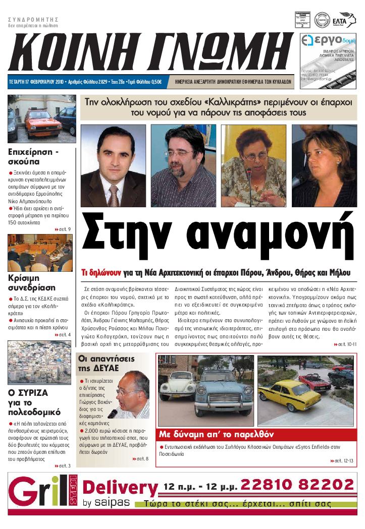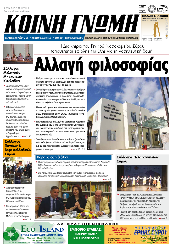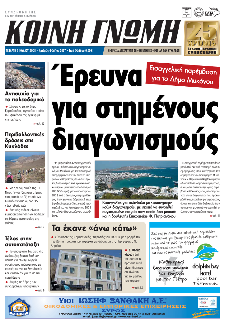ΚΟΙΝΗ ΓΝΩΜΗ ΚΟΙΝΗ ΓΝΩΜΗ Ημερησια Εφημεριδα των Κυκλαδων