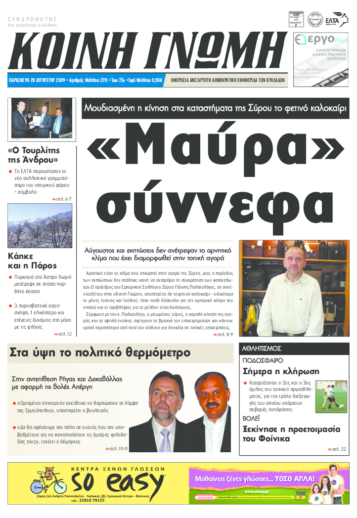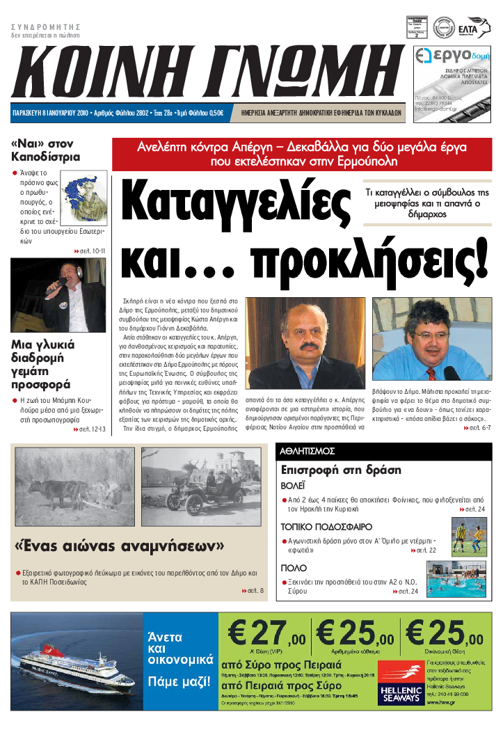 ΚΟΙΝΗ ΓΝΩΜΗ ΚΟΙΝΗ ΓΝΩΜΗ Ημερησια Εφημεριδα των Κυκλαδων