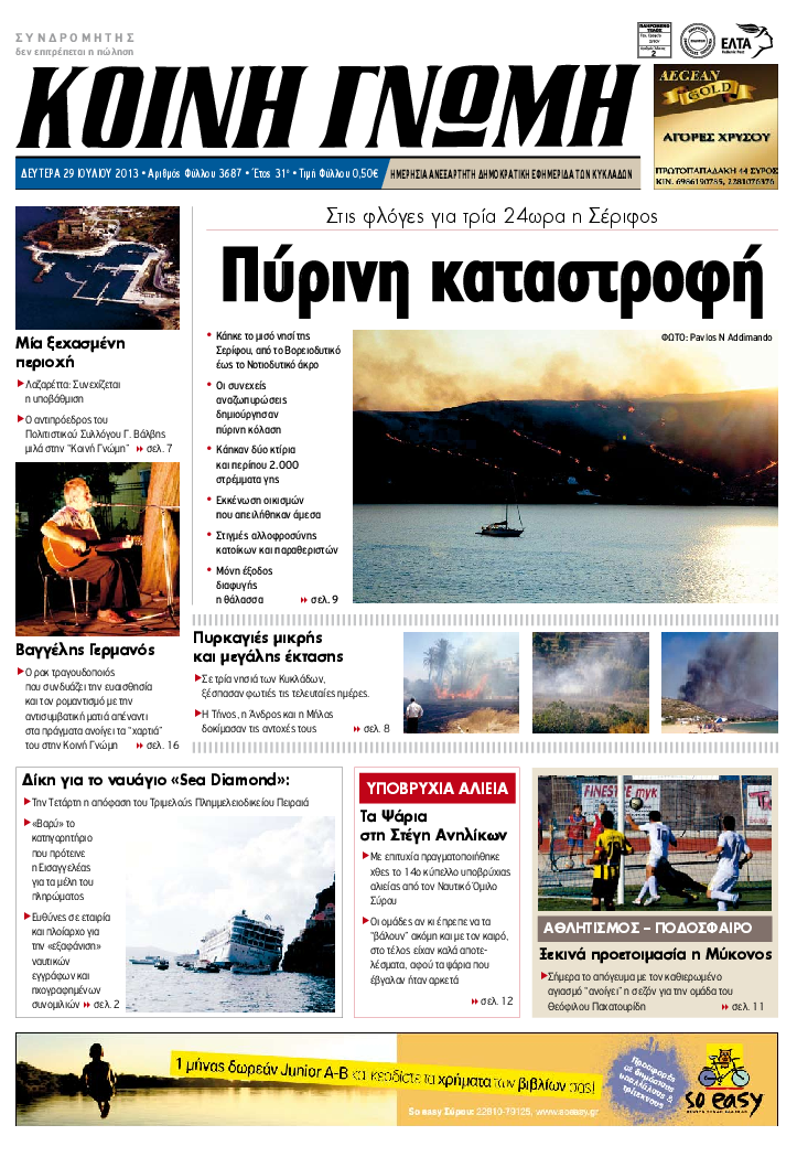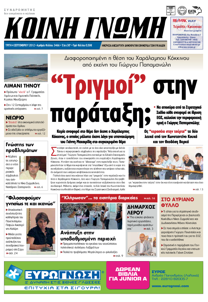 ΚΟΙΝΗ ΓΝΩΜΗ ΚΟΙΝΗ ΓΝΩΜΗ Ημερησια Εφημεριδα των Κυκλαδων