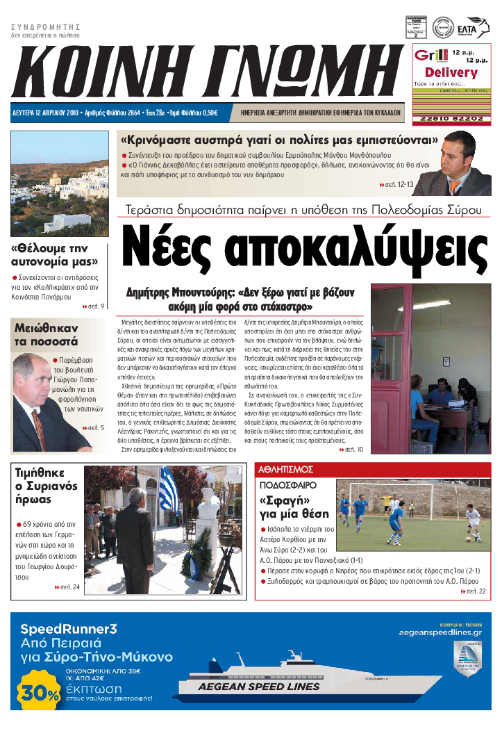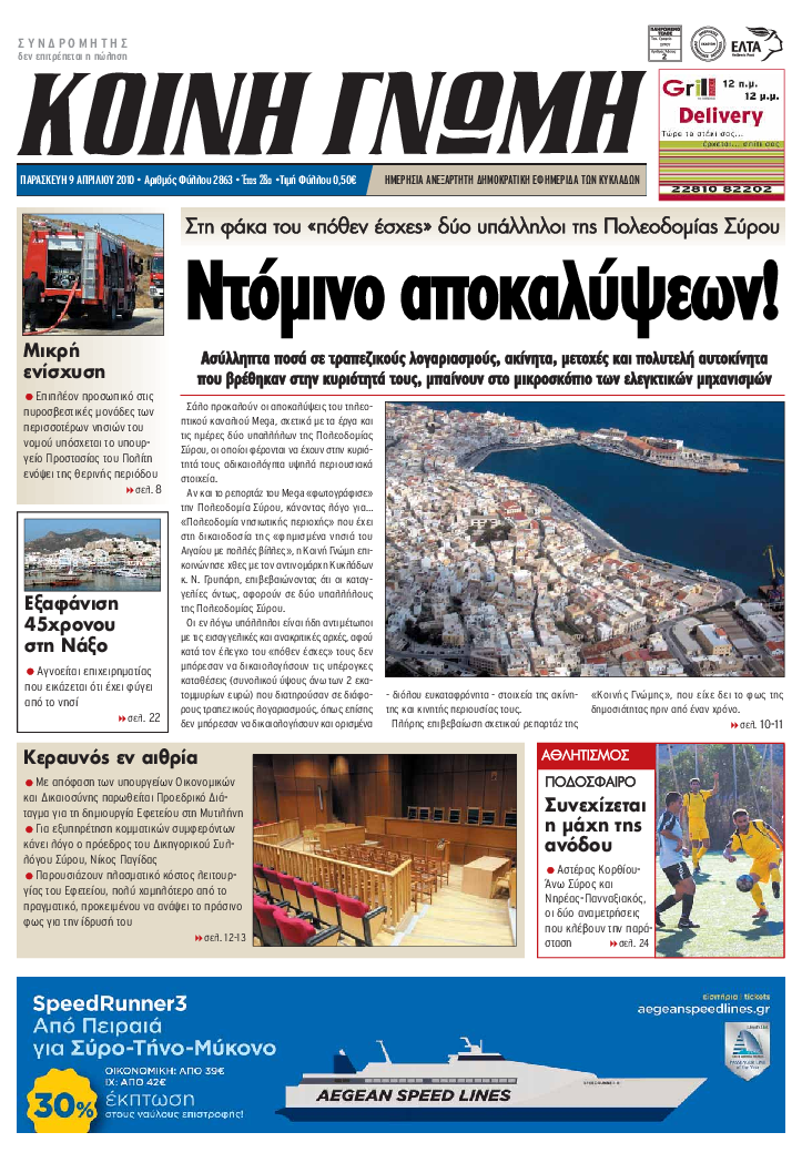ΚΟΙΝΗ ΓΝΩΜΗ ΚΟΙΝΗ ΓΝΩΜΗ Ημερησια Εφημεριδα των Κυκλαδων