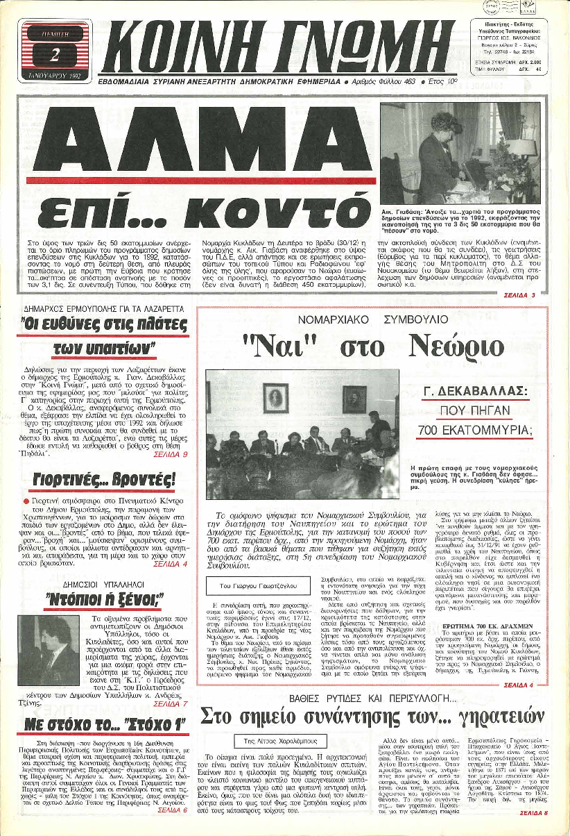 ΚΟΙΝΗ ΓΝΩΜΗ ΚΟΙΝΗ ΓΝΩΜΗ Ημερησια Εφημεριδα των Κυκλαδων