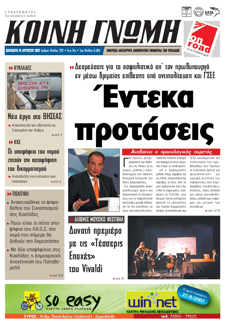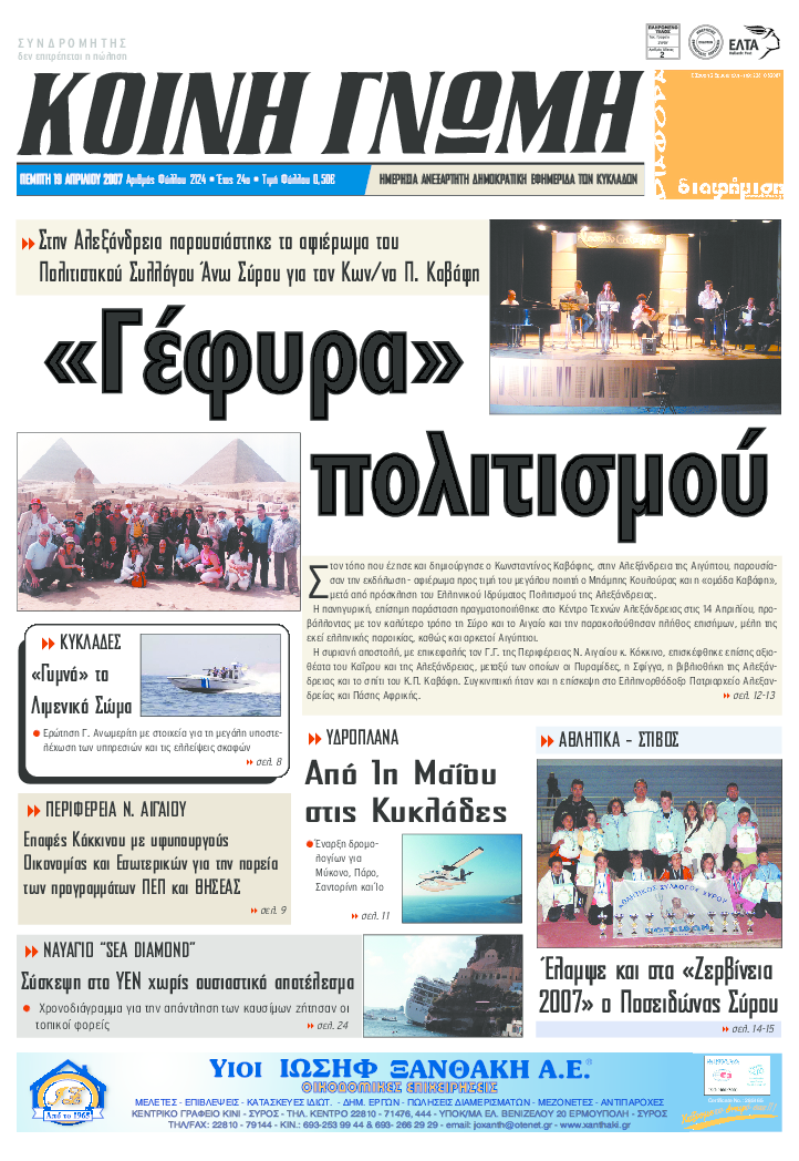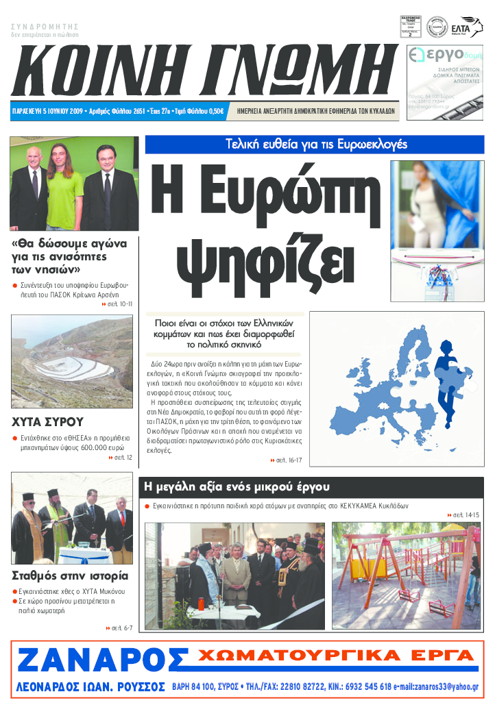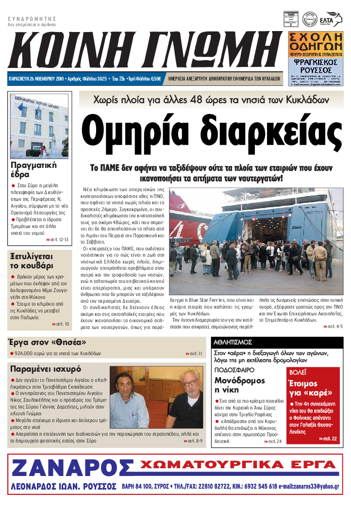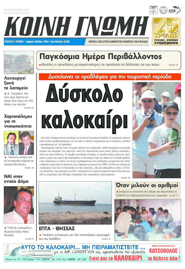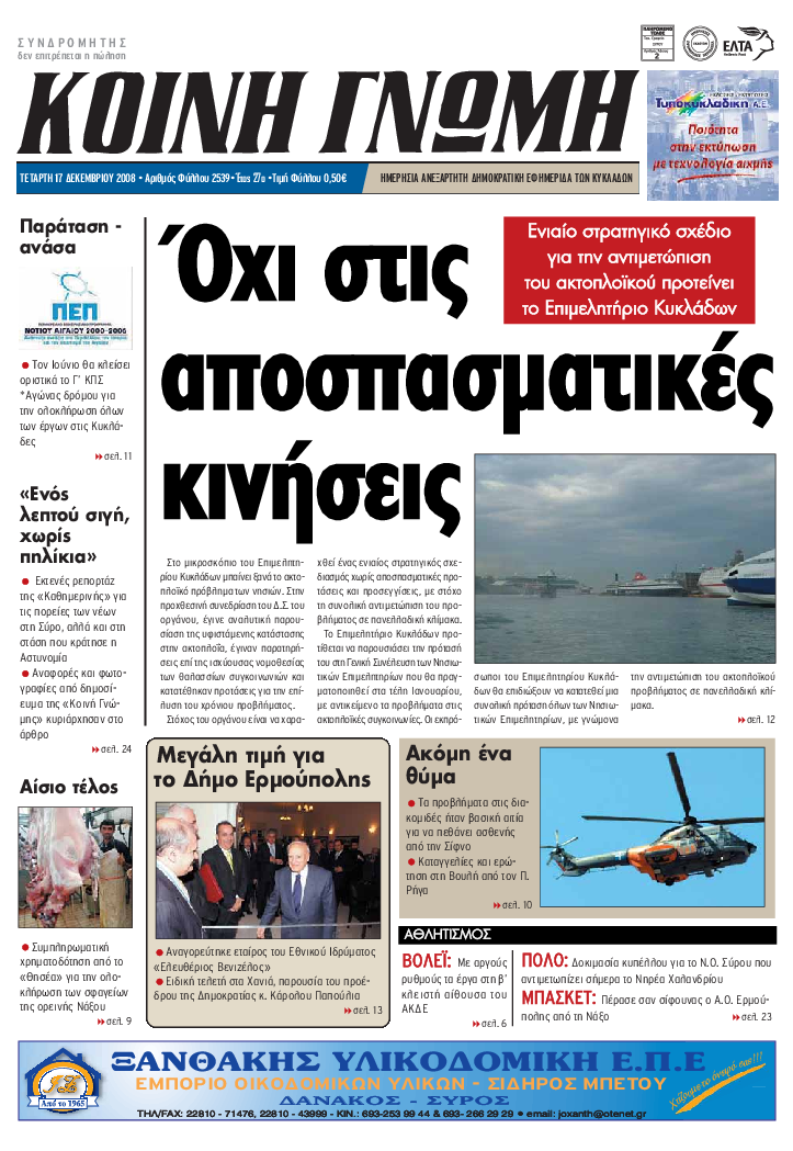 ΚΟΙΝΗ ΓΝΩΜΗ ΚΟΙΝΗ ΓΝΩΜΗ Ημερησια Εφημεριδα των Κυκλαδων